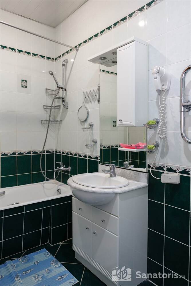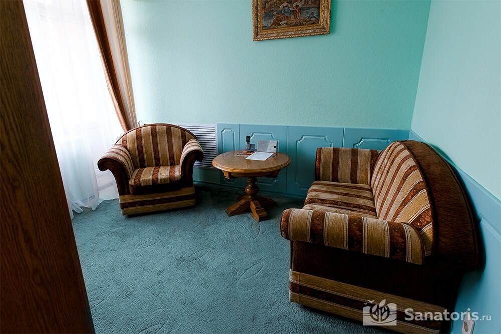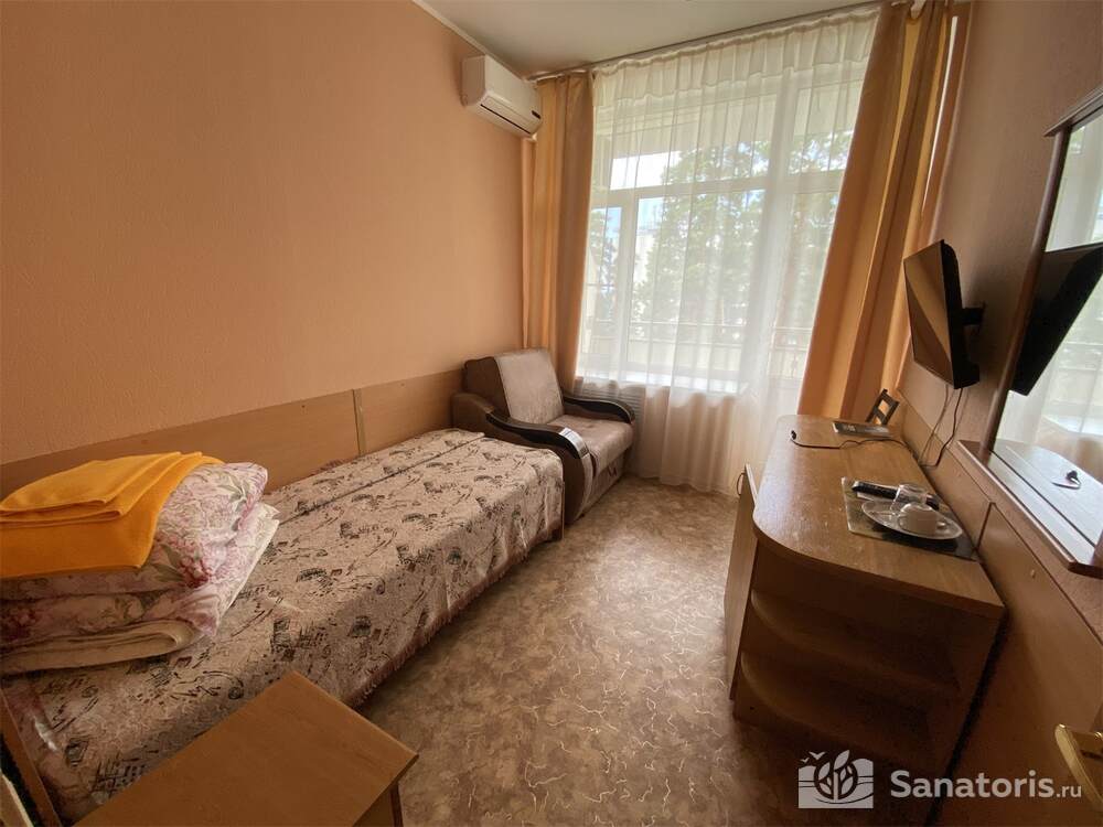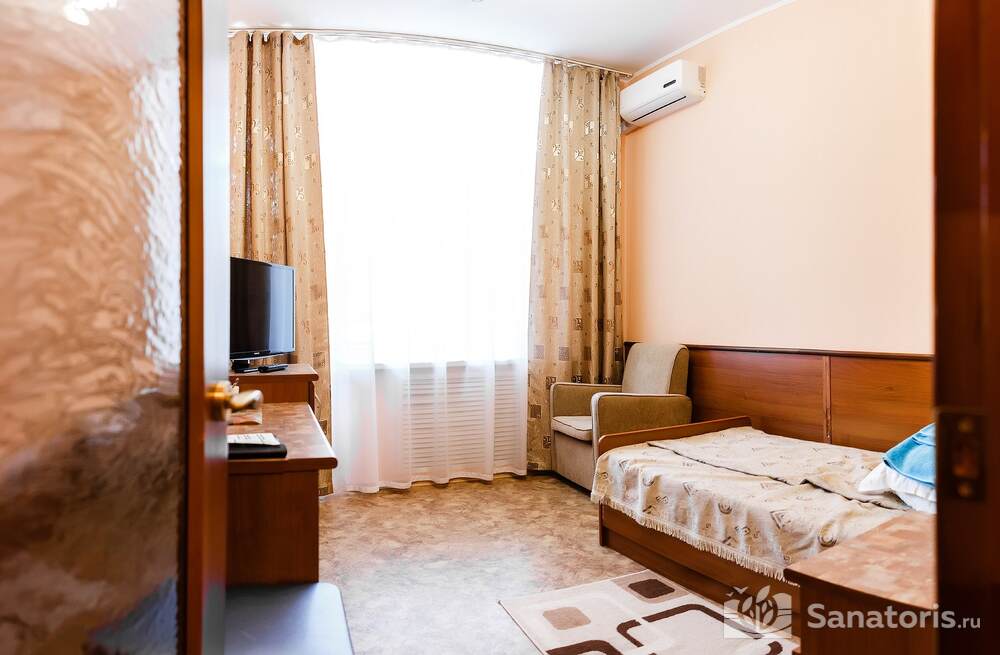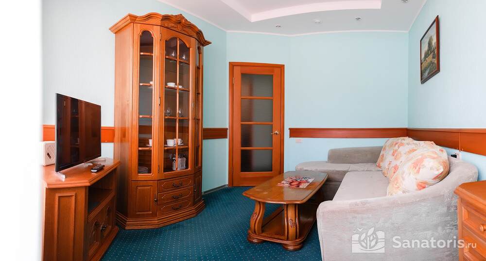 Оздоровительный комплекс состоит из жилого шестиэтажного корпуса и лечебного блока. Они соединяются между собой переходом. Для удобства проживающих в жилом корпусе имеются лифты. Санаторий одновременно может принять около двух сотен отдыхающих. К услугам гостей комфортабельные одноместные и двухместные номера «Стандарт» и «Люкс». Комнаты оснащены необходимой бытовой техникой, есть кондиционер, посуда, а также отдельный санузел.