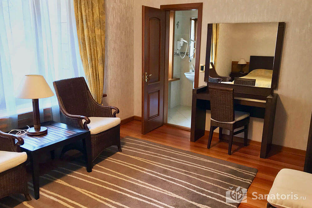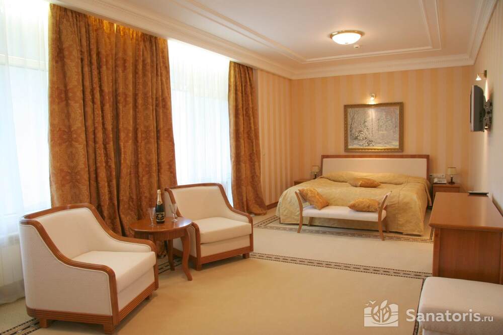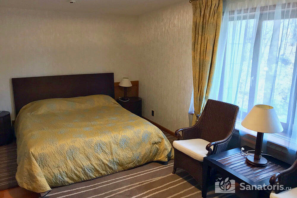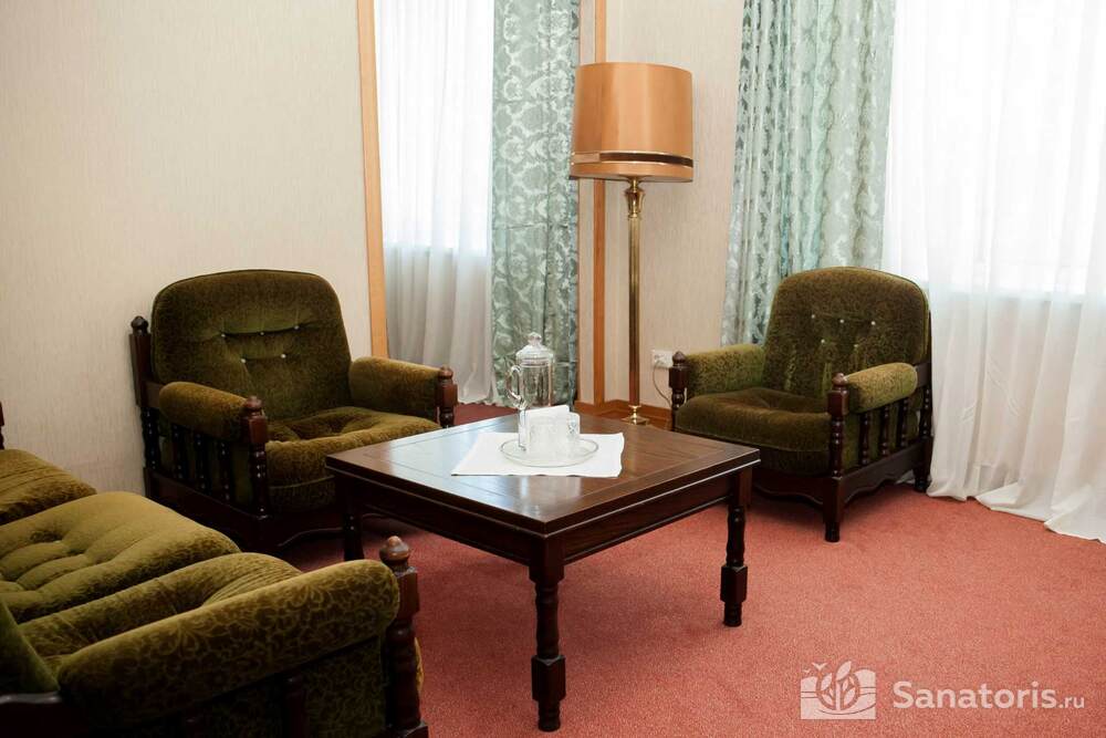 Санаторный номерной фонд может одновременно принять до 316 гостей: к услугам приезжающих на отдых и лечение — номера нескольких категорий комфортности на выбор.В номерах имеется все необходимое для отдыха и проживания — холодильник, телевизор, фен, кондиционер, современные ванные комнаты, Wi-Fi. Из окон многоэтажного жилого корпуса открываются потрясающие виды на горы, водохранилище и окрестные леса.