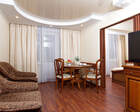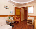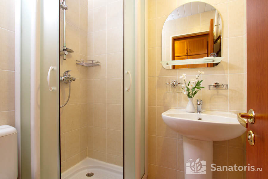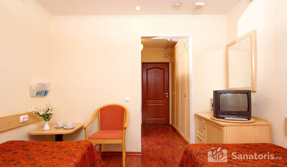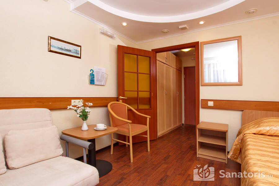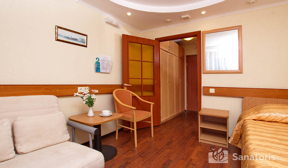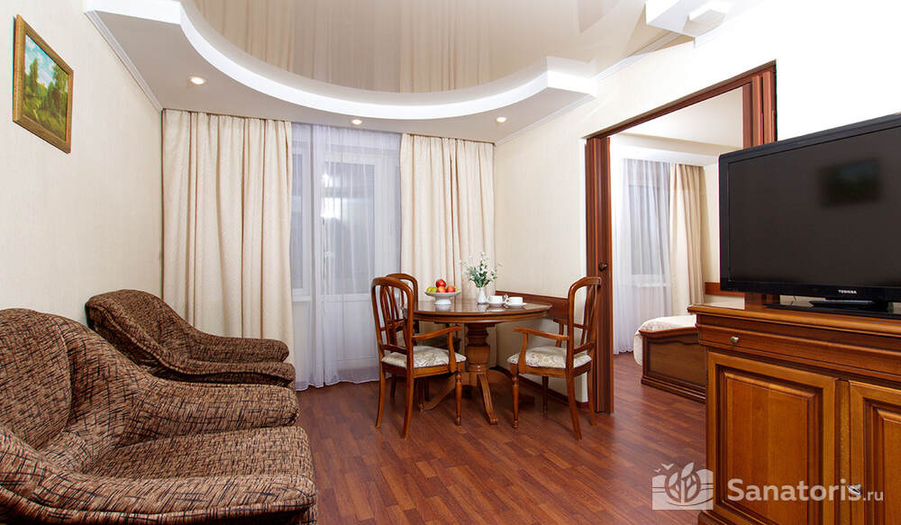 Одновременно в санатории может проживать до 400 человек. Для размещения гостям предлагаются комфортабельные одно- и двухкомнатные жилые номера с отдельными санузлами, современной меблировкой и необходимым набором бытовой техники.