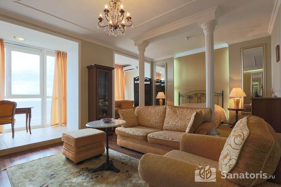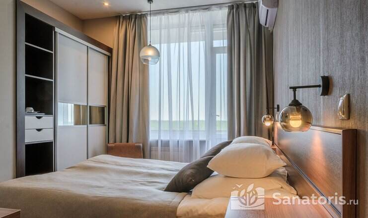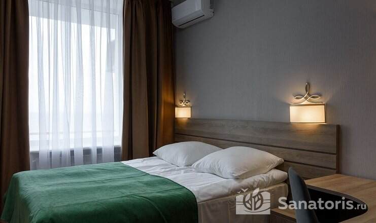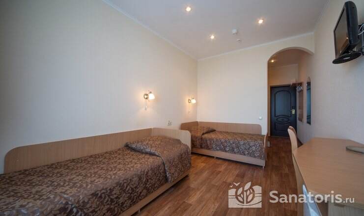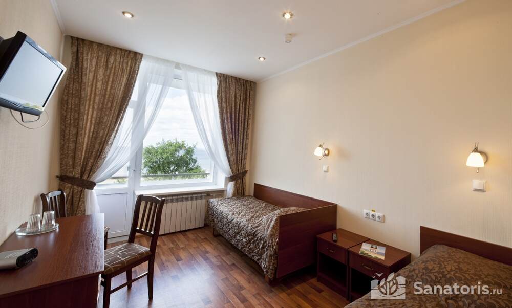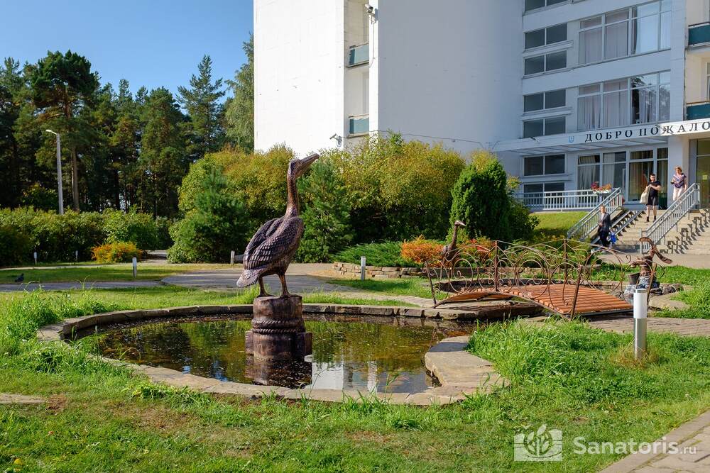 Территория здравницы максимально благоустроена и находится под охраной. Здесь есть спальный корпус, медицинский центр и административное здание. Спальный корпус состоит из 10 этажей. Есть комфортный лифт. Одновременно в корпусе можно разместить 550 постояльцев.