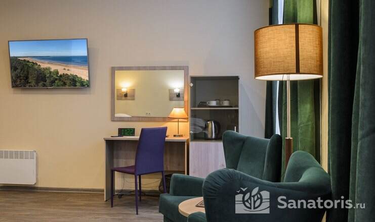 Недалеко от санатория курсирует общественный транспорт. Так же есть много магазинов, аптеки и банкоматы. Ближайший аэропорт расположен в 55 километрах, а вокзал в 35 километрах.