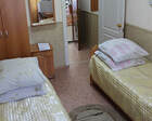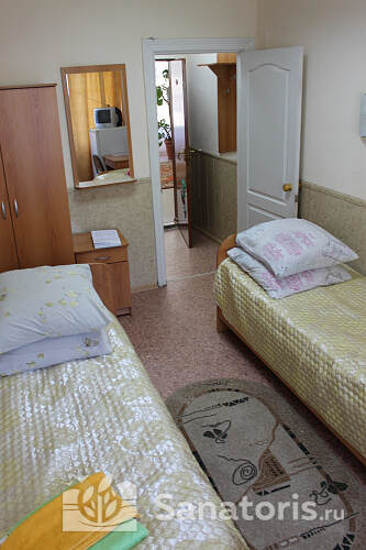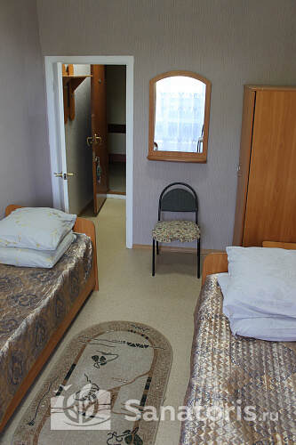 Территория санатория круглосуточно охраняется. Сама центр оздоровления представлен двумя двухэтажными современными корпусами. Между собой они здания соединяются специальными проходами. Номера разные и оборудованы в зависимости от категории. Если речь идет об экономе, то туалетная комната будет находится на этаже. А вот номера категории стандарт обеспечены собственным санузлом.