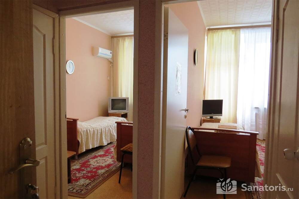 На обширной территории санатория находится пятиэтажный корпус, который предназначен для проживания гостей, крытый бассейн, джакузи под открытым небом, автостоянка. Жилой комплекс представлен 71 номером различной категории, каждый из которых оборудован необходимой техникой и удобной мебелью для комфортного проживания.