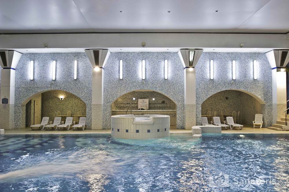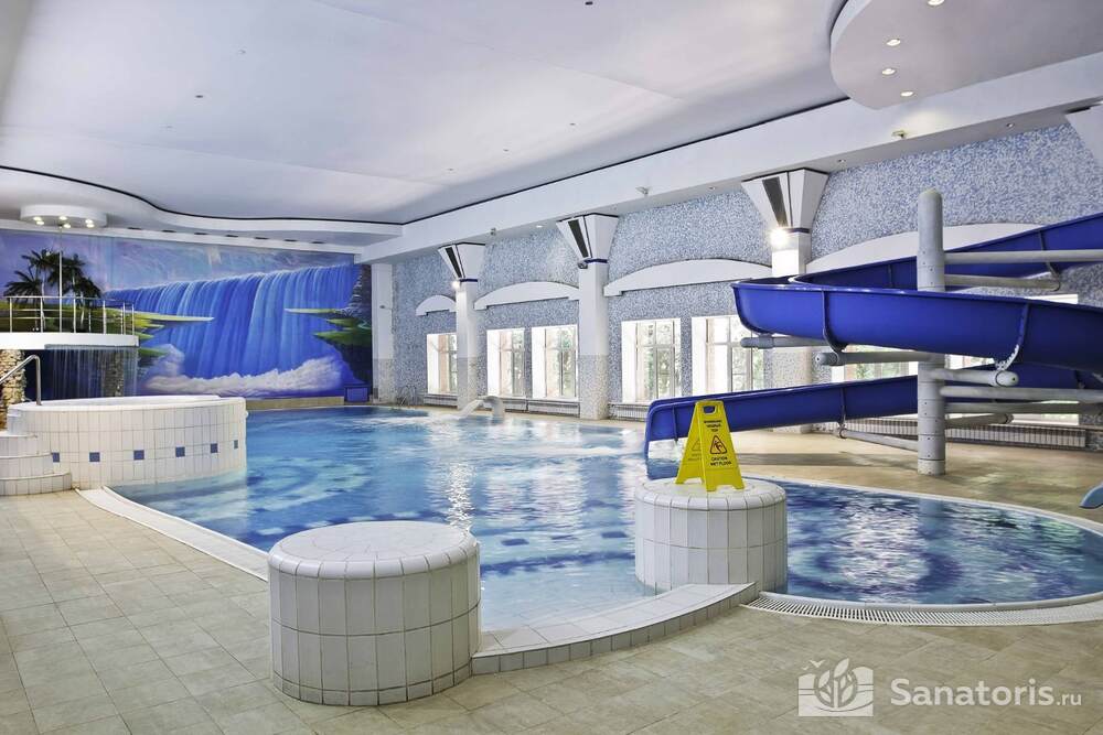 В санатории есть современный комплекс физкультурно-оздоровительного назначения с аквапарком на его территории. Здесь имеются спортивные залы и специальные помещения, предназначенные для физиотерапии и других лечебных процедур.