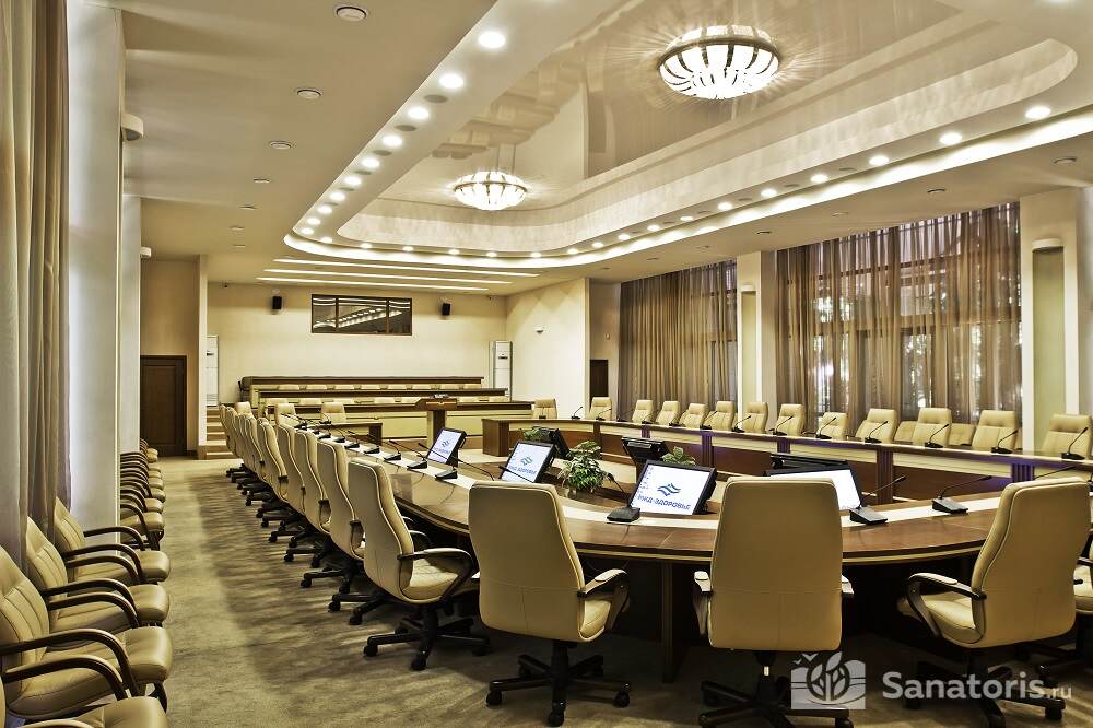 В санаторном комплексе есть 2 конференц-зала, где проводятся коллективные мероприятия, семинары и конференции. В зале 200 посадочных мест. Рабочие места оснащены звуковой и воспроизводящей аппаратурой. Во 2-ом актовом зале 70 мест. Места для работы оборудованы компьютерами и мультимедийной аппаратурой.
