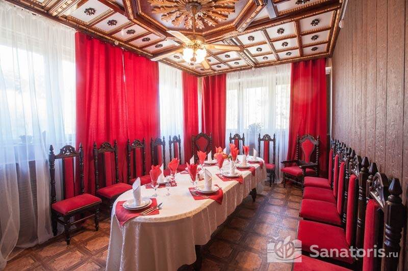 В здании санаторной столовой организовано сбалансированное четырехразовое питание. Специальное меню разработано диетологом и скорректировано для разных групп отдыхающих. Рядом с санаторием есть спортивная база.