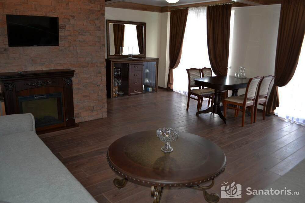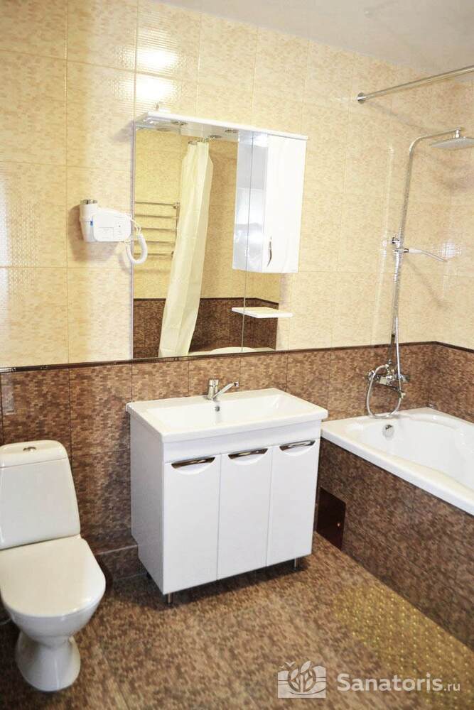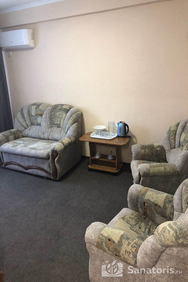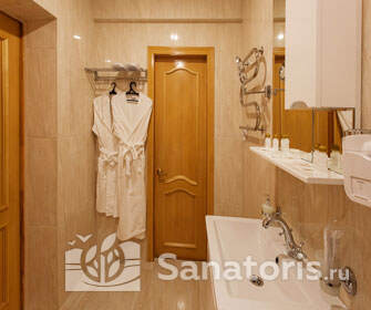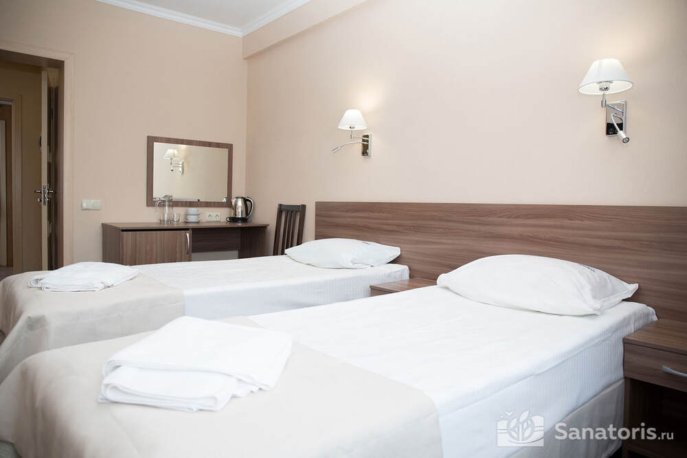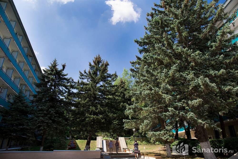 Санаторий представляет собой целый комплекс, состоящих из двух зданий. Отдельно возвышается корпус, где осуществляются лечебные мероприятия. Попасть из одного здания в другой не составит труда, так как для этих целей возведен крытый переход. Поэтому даже в зимний период передвигаться между корпусами комфортно.