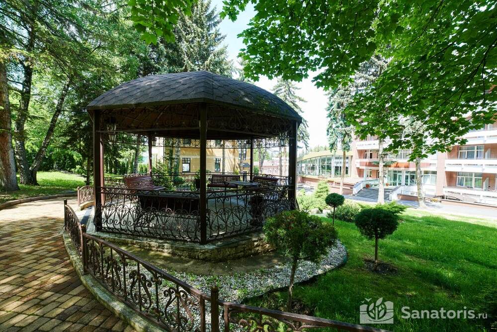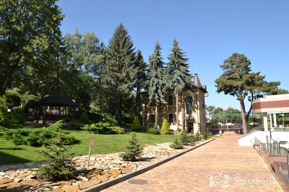Территория здравницы хорошо продумана и максимально ухожена. Здесь расположились зеленые лужайки и клумбы с разнообразными цветами.