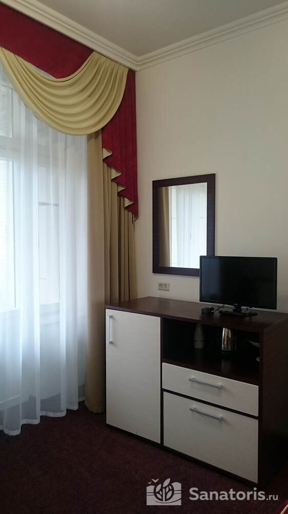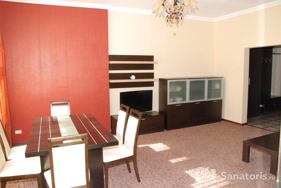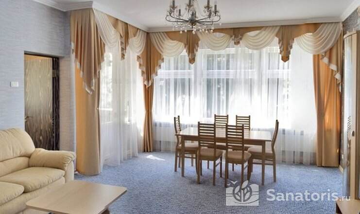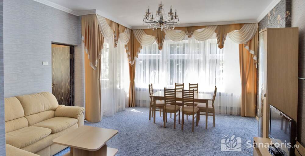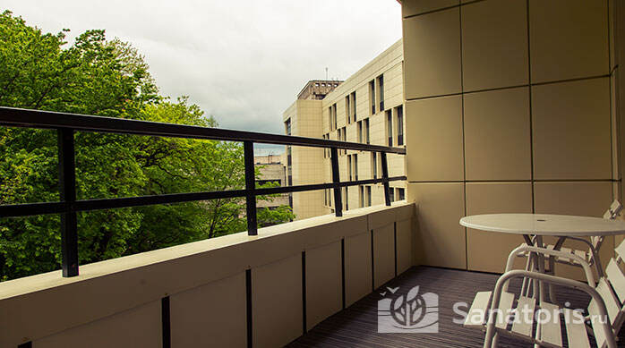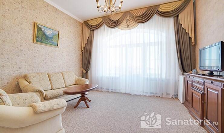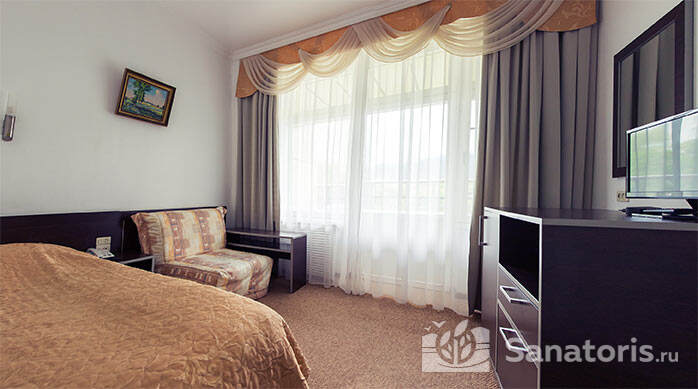 Для гостей здравницы предусмотрено 2 жилых корпуса, медицинский корпус и спортивный зал. Есть номера разной вместительности и уровня комфортабельности. Самые шикарные апартаменты класса «люкс» состоят из 3 комнат. В каждом номере есть современная мебель, холодильник, кондиционер, кабельное телевидение. Просторные балконы открывают красивую панораму на город.