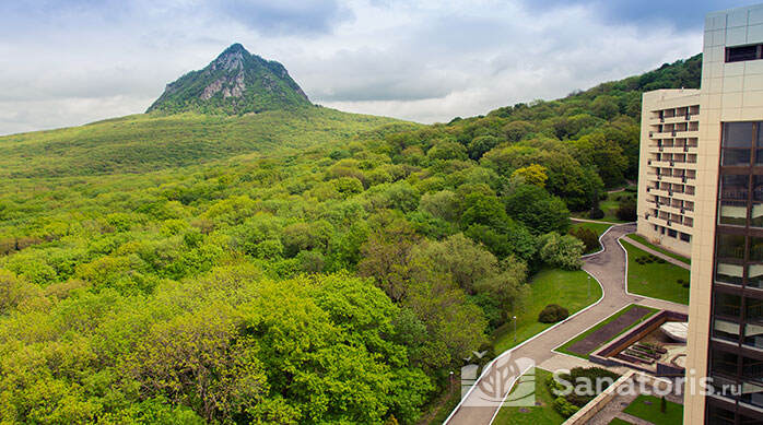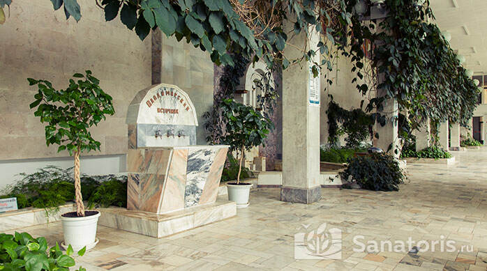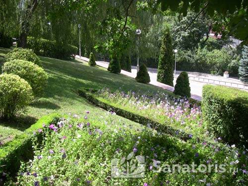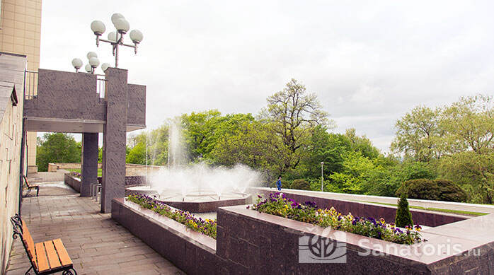 Территория санатория составляет около 75 гектаров. Здесь есть уникальный зимний сад, родники с минеральной водой и бювет.