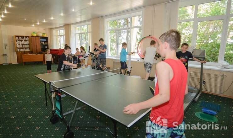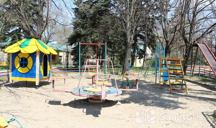 Маленькие гости санатория обеспечиваются особой заботой и вниманием. На базе санатория работает педиатр и много детски узкопрофильных специалистов. Развлечением деток занимаются аниматоры и опытные педагоги. На территории комплекса есть детская площадка с качелями и песочницей, а в спальном корпусе оборудована игровая зона с игрушками, мольбертами для рисования и другими видами детского досуга.