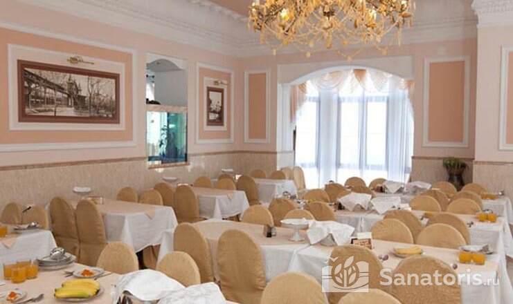 Гости здравницы обеспечиваются комплексным питанием 4 раз в день. Есть специальное диетическое и детское меню. Питание осуществляется по системе «заказное меню».
