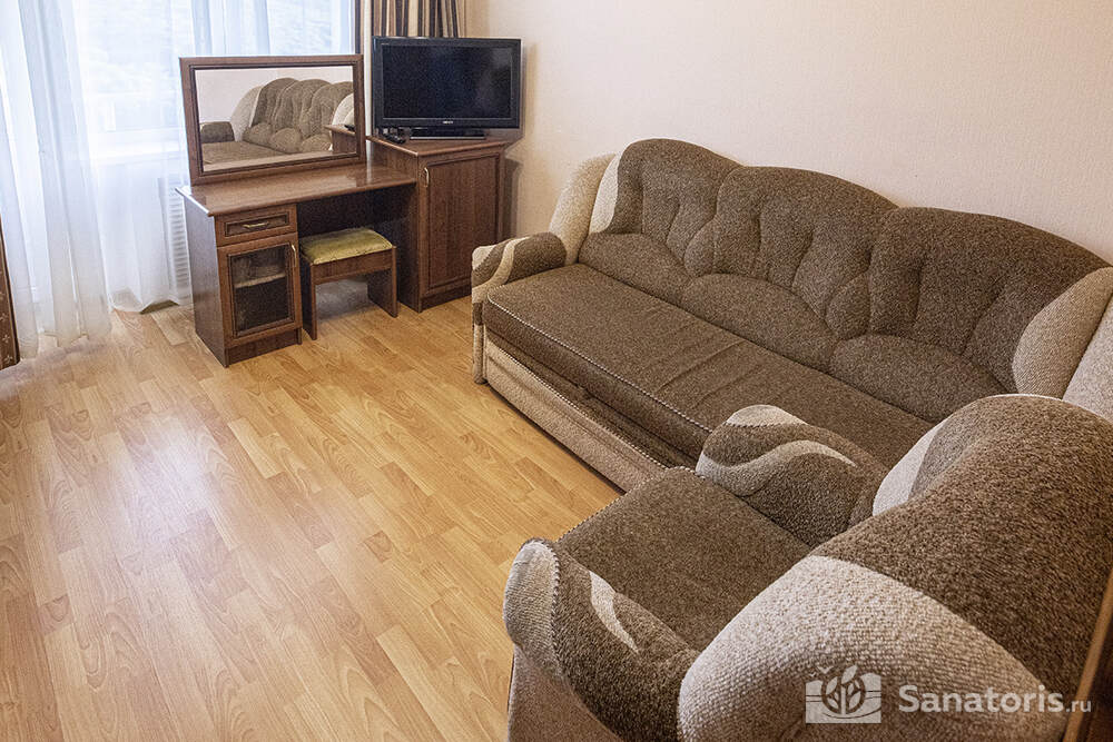Здравница представлена двумя современными корпусами. Первый состоит из четырнадцати этажей, второй трехэтажный и без лифта. Номера разные, но при этом оборудованы всем необходимым. В некоторых из них установлены даже маленькие плиты и имеются сейфы для хранения личных вещей.