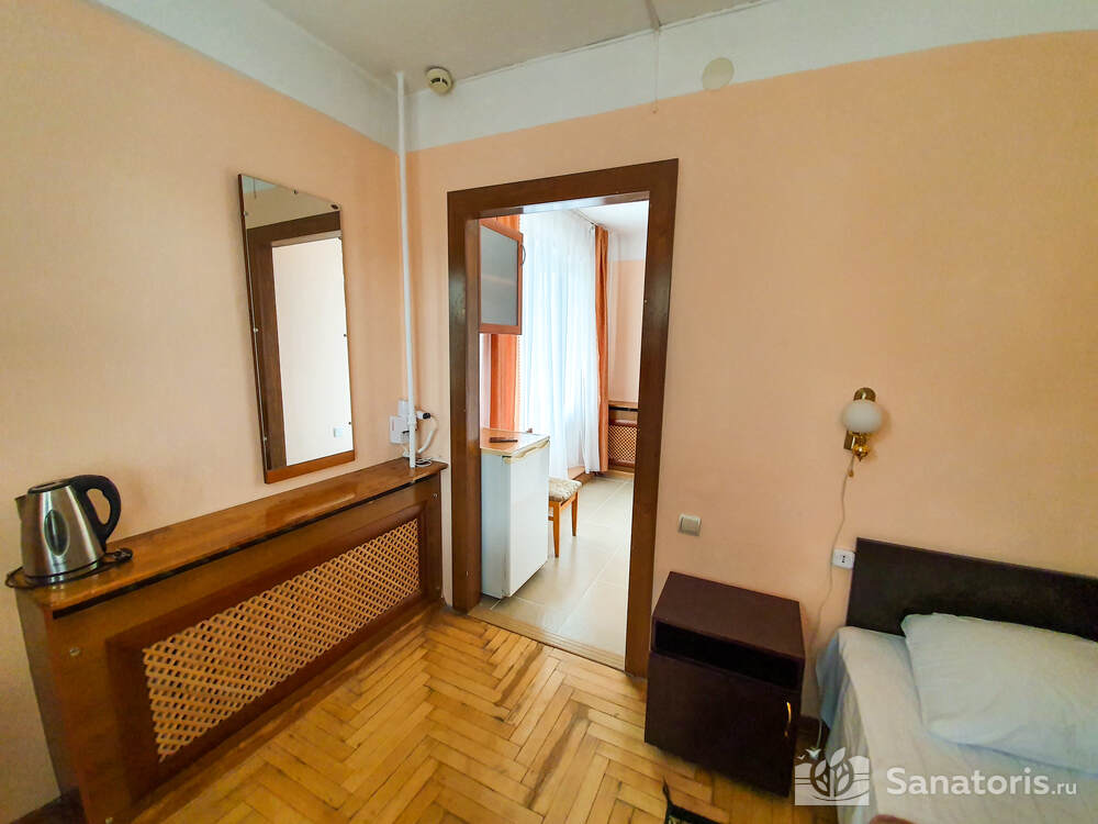 Жилой корпус состоит из 5 этажей. Одновременно здесь могут разместиться 250 постояльцев. Есть номера разной вместительности и уровня комфорта. В каждом из них имеется ванная комната, санузел, мебель и бытовая техника.
