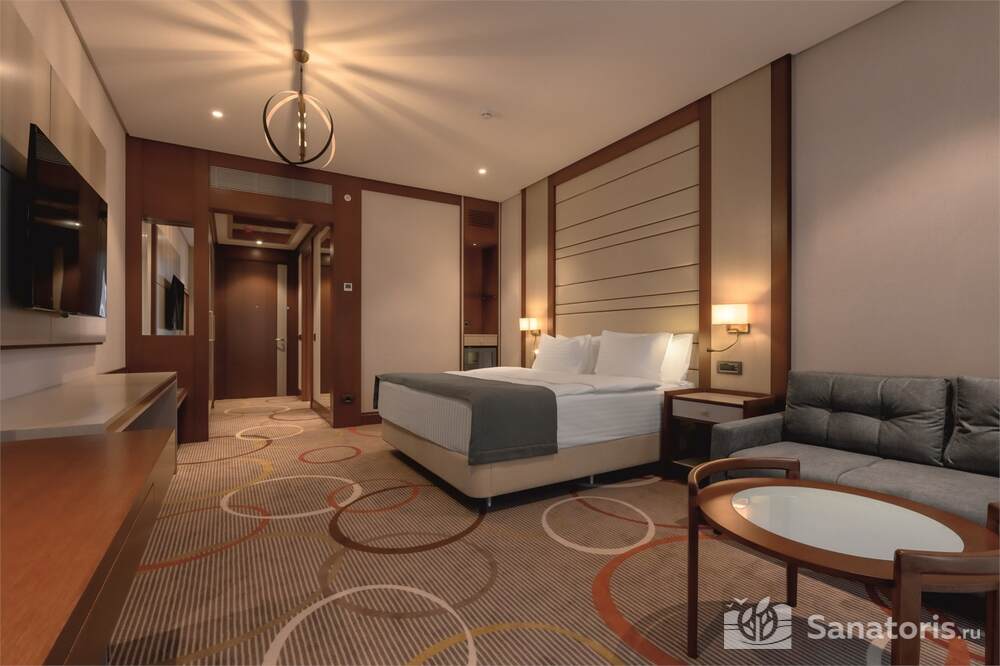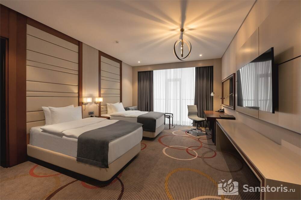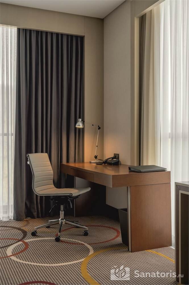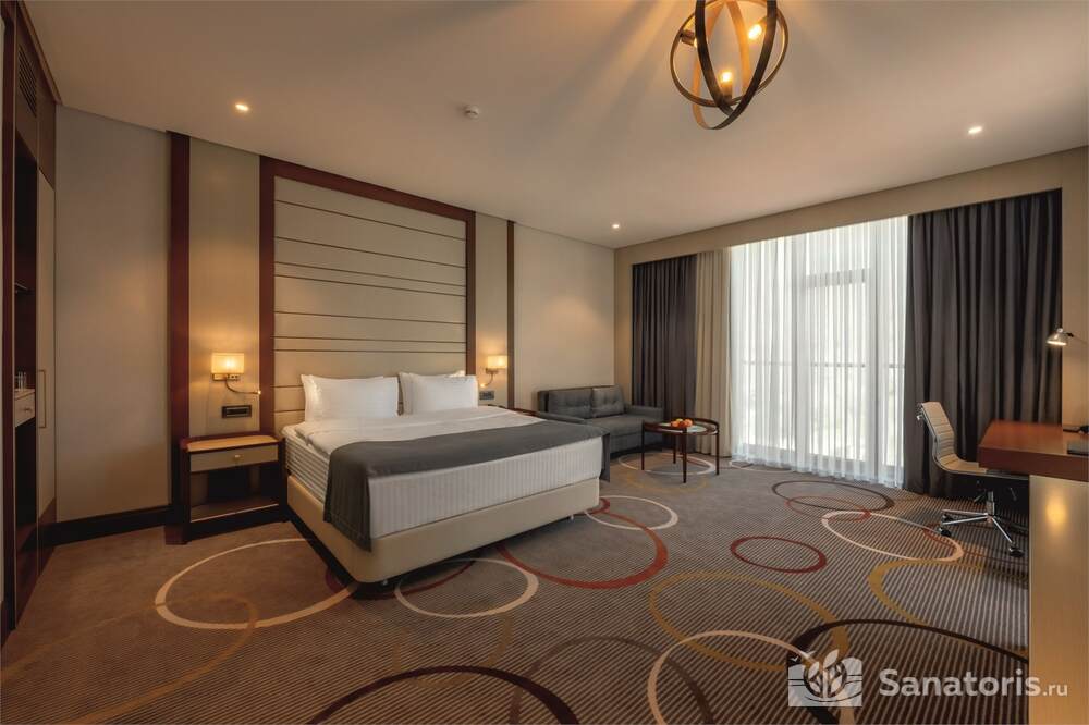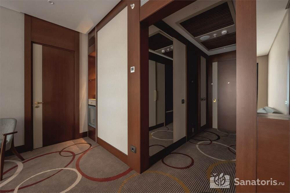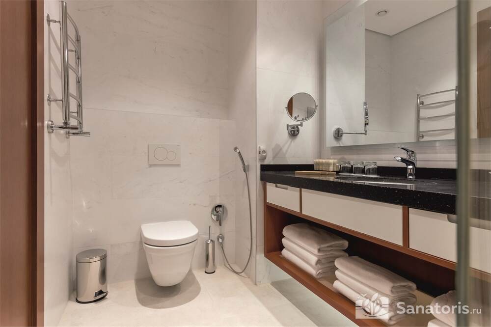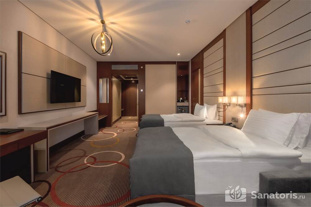 Номера в санатории подразделяются по категориям. Суммарное количество мест для одновременного размещения – 500. Номера есть различной площади. Однокомнатные номера довольно просторные, площадь номера не менее 36 м2. Двухкомнатные по площади есть разные, максимальная площадь такого апартамента составляет 108 м2. В каждом номере созданы максимальные удобства для проживающих (санузел, ванна, фен, электрический чайник, холодильник, телевизор, кондиционер, подключен Wi-Fi).