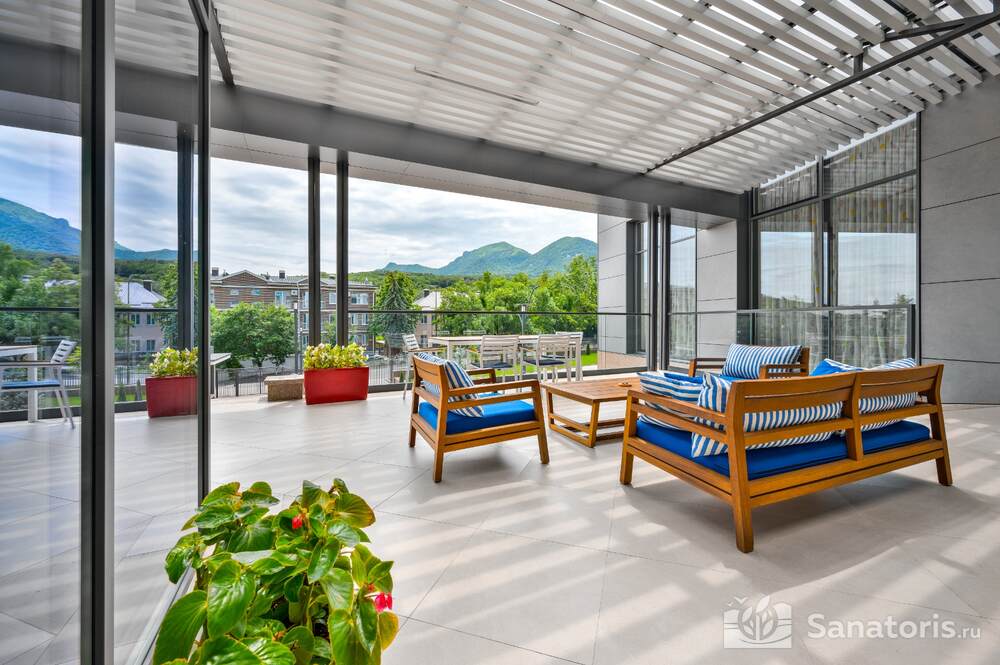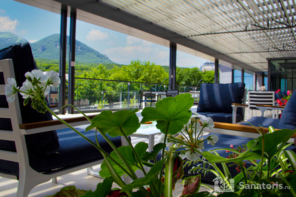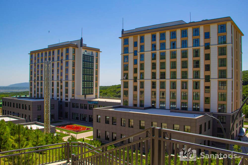 Санаторий имеет очень удобное расположение. На его территории находится 2 10-ти этажных корпуса, которые соединены между собой оборудованным теплым переходом. С одной стороны санатория максимально приближена гора Железная, с другой стороны располагается лесной массив, плавно переходящий в зону курортного парка. Территория санатория ухожена и изолирована от случайного проникновения посторонних.