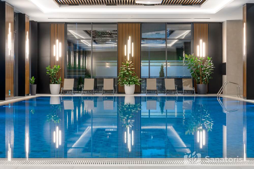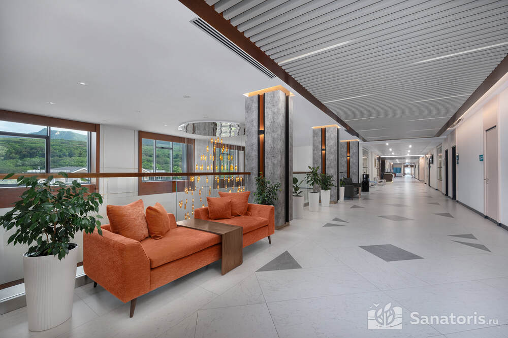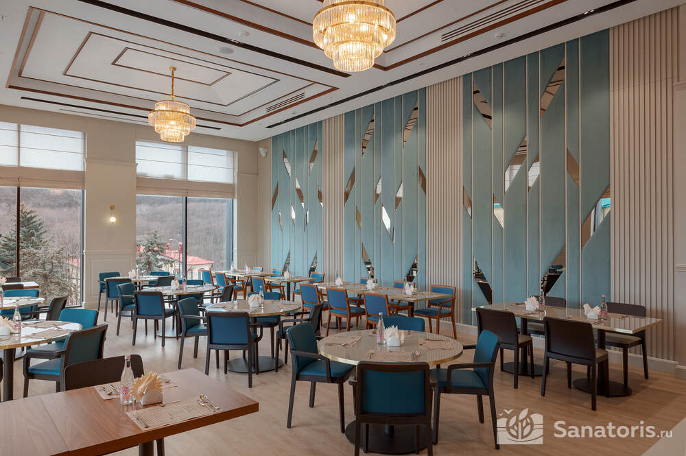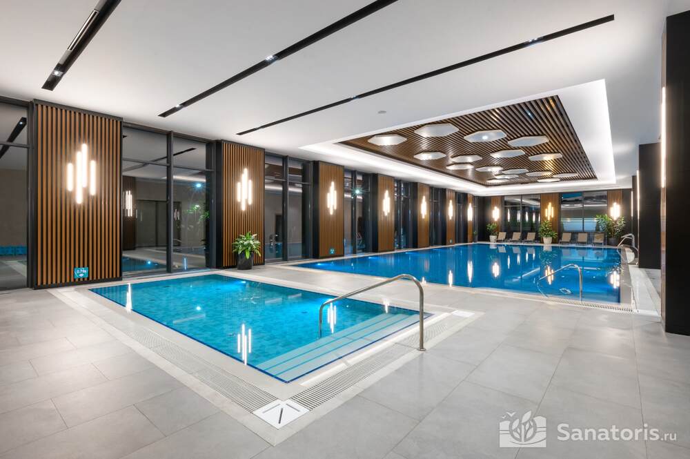 На территории санаторного комплекса есть бассейн, залы для занятий спортом, оснащенные различными тренажерами на любой вкус. Помимо этого можно посещать площадки для настольных игр, спа-центр, аэросолярий. В детской зоне располагается клуб «Волшебный городок».