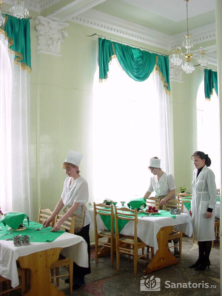 В санатории питание осуществляется три раза: завтрак, обед и ужин. Блюда отпускаются на основании заказов, сделанных отдыхающими по меню. Технология приготовления основывается на нормах диетотерапии по Певзнеру. Обращаем внимание, что количество приемов пищи в день может быть изменено на основании показателей того или иного заболевания отдыхающего.