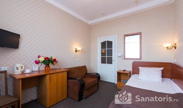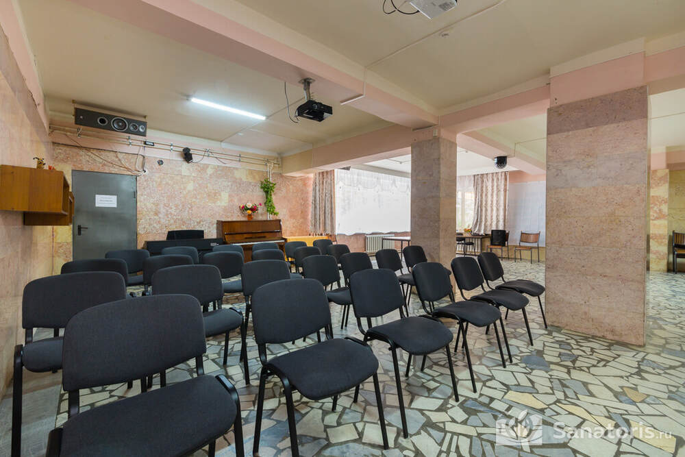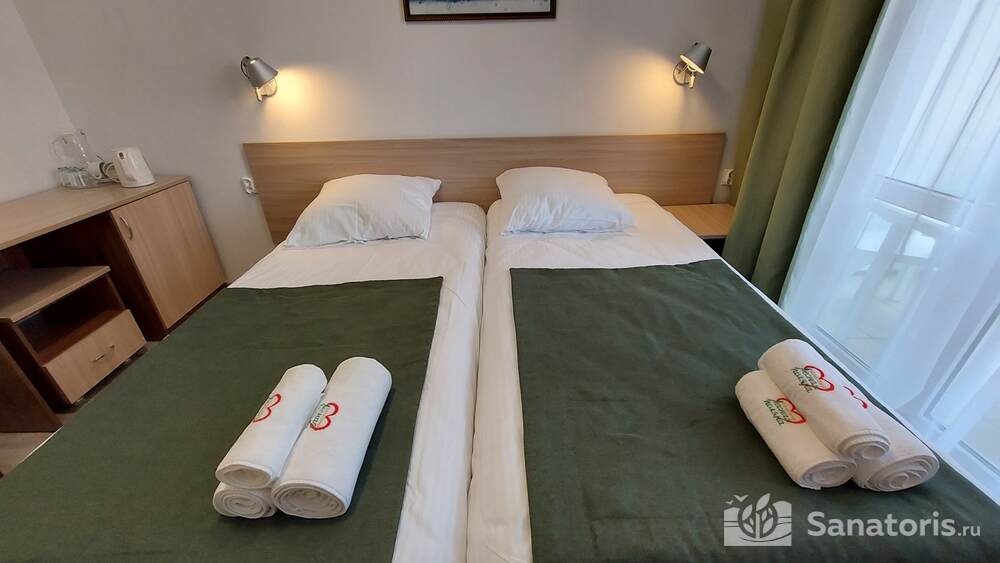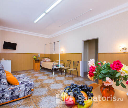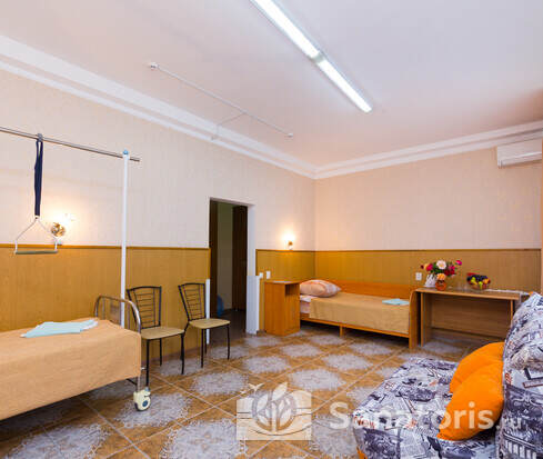 Также в здравнице проводится терапия пиявками и посещением ванн с разными наполнителями и добавками. Помимо лечебного корпуса санаторий состоит из вместительного обеденного зала и пяти жилых зданий. Причем два из них представляют собой вместительные и комфортабельные коттеджи для семейного размещения, имеющие класс люкс.