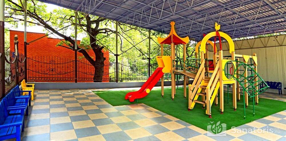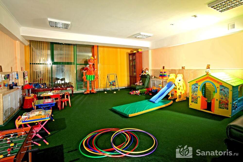 Санаторий принимает на оздоровление не только взрослых, но и детей. Для них предусмотрена специальная программа оздоровления. Маленькие гости могут посещать детскую комнату, где работают опытные педагоги и воспитатели. Для активного времяпровождения детям оборудовали детскую площадку с качелями и песочницами.
