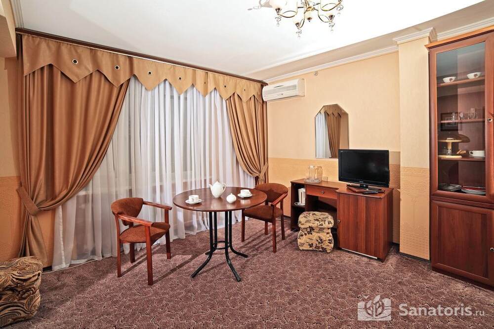Одновременно санаторий может принять 120 постояльцев. Кроме спальных корпусов здесь есть лечебно-диагностический центр, который специализируется практически по всем заболеваниям. В штате медицинского центра работают лучшие доктора и медсестры. Каждый пациент получает индивидуальный подход с учетом состояния здоровья. Врачи санатория могут написать направление в радонолечебницу Пятигорска.