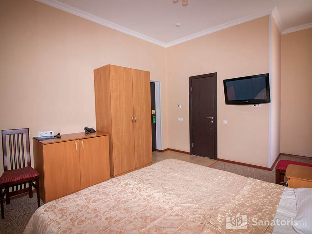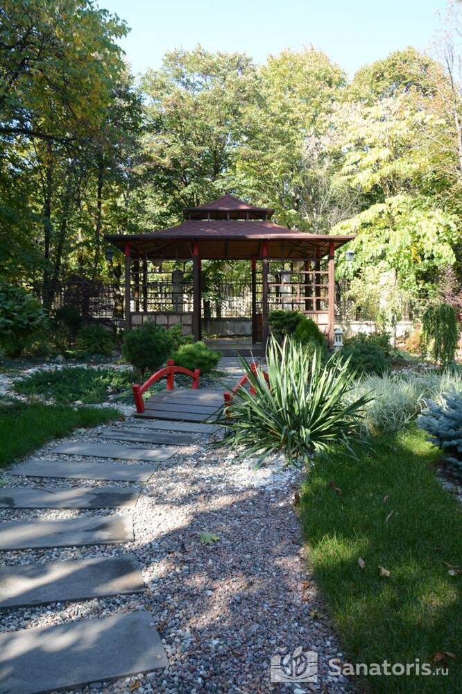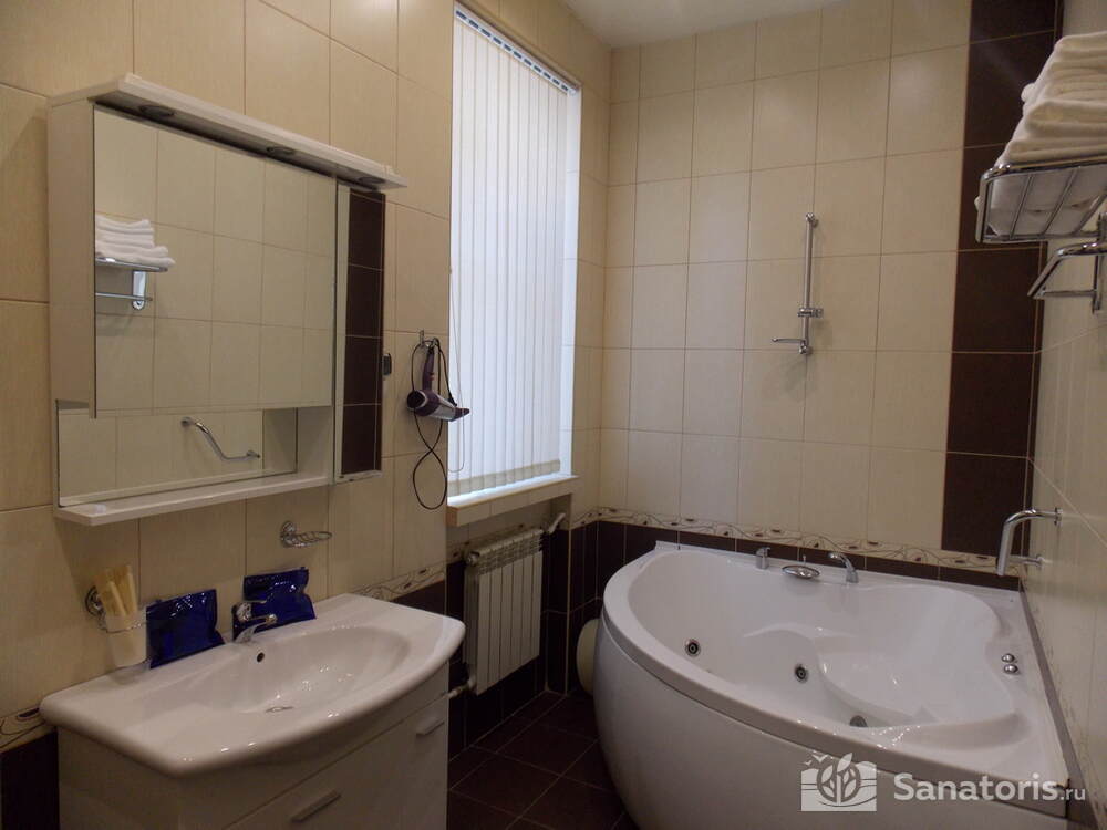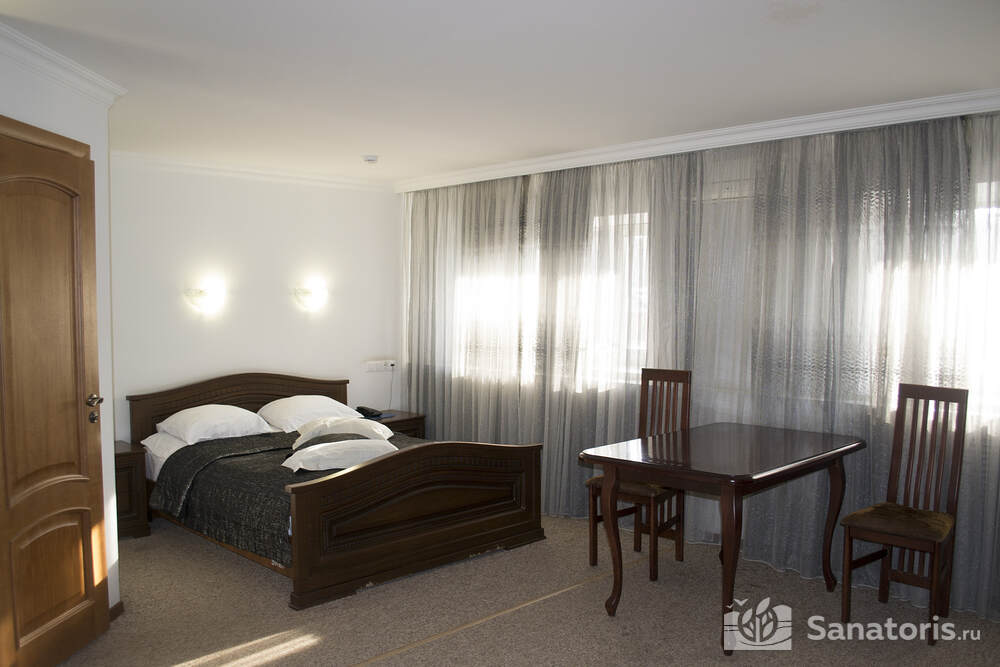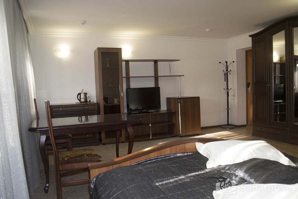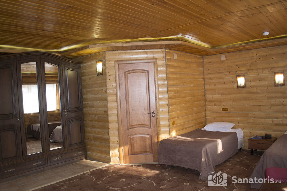 Также в здравнице проводится терапия пиявками и посещением ванн с разными наполнителями и добавками. Помимо лечебного корпуса санаторий состоит из вместительного обеденного зала и пяти жилых зданий. Причем два из них представляют собой вместительные и комфортабельные коттеджи для семейного размещения, имеющие класс люкс.