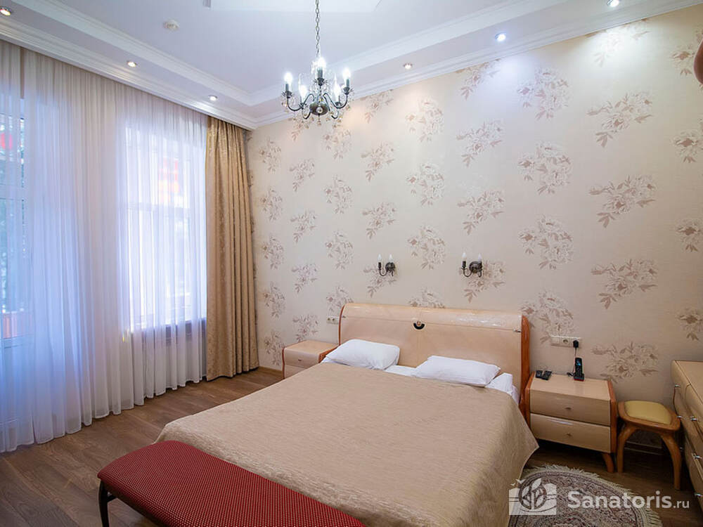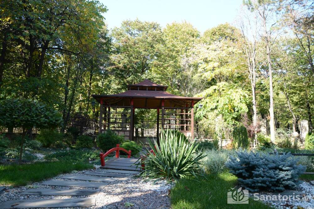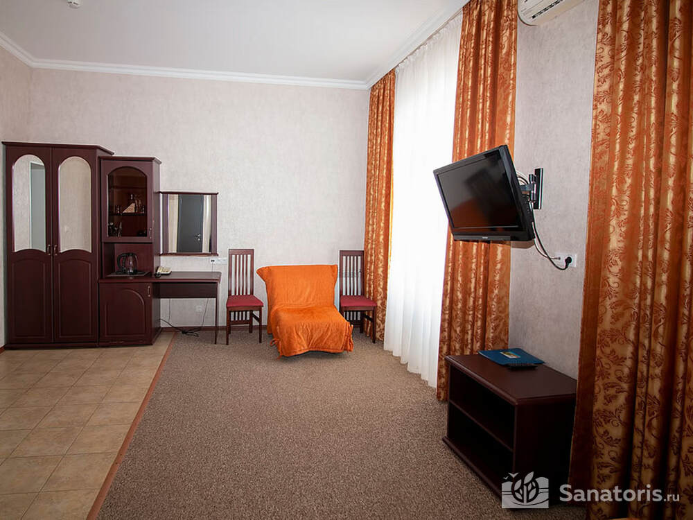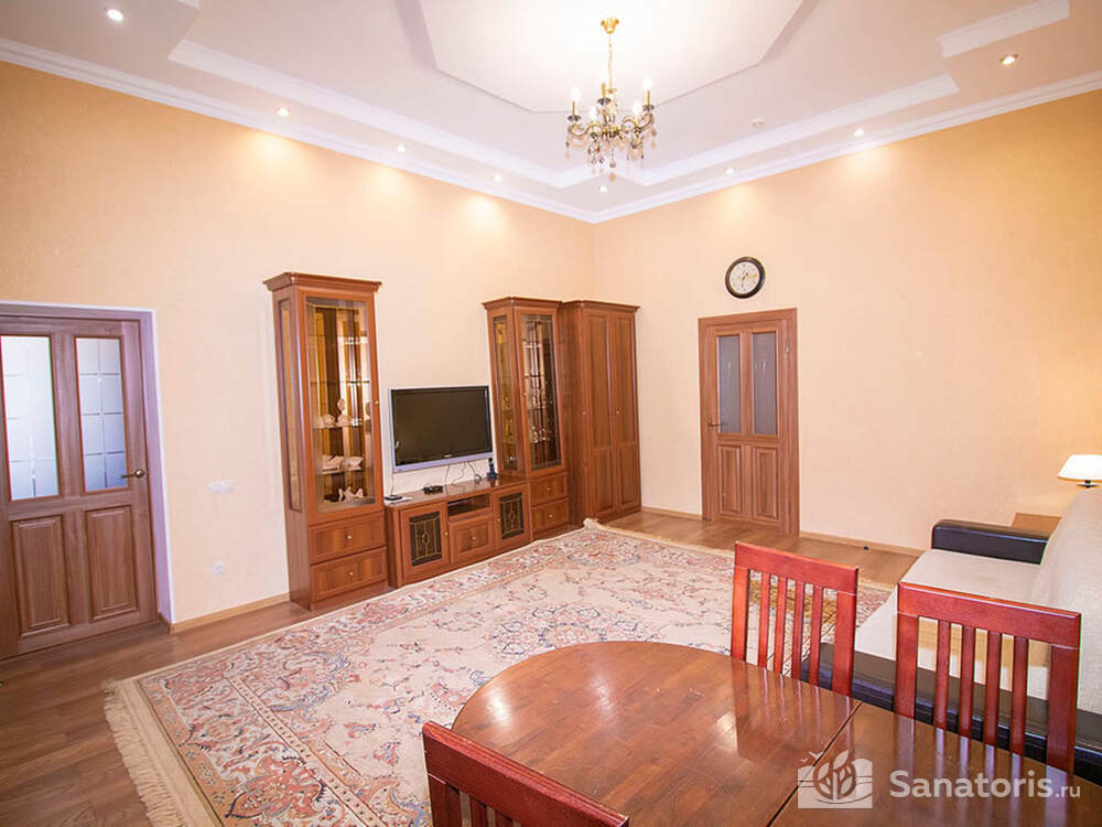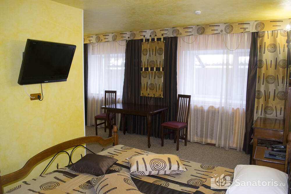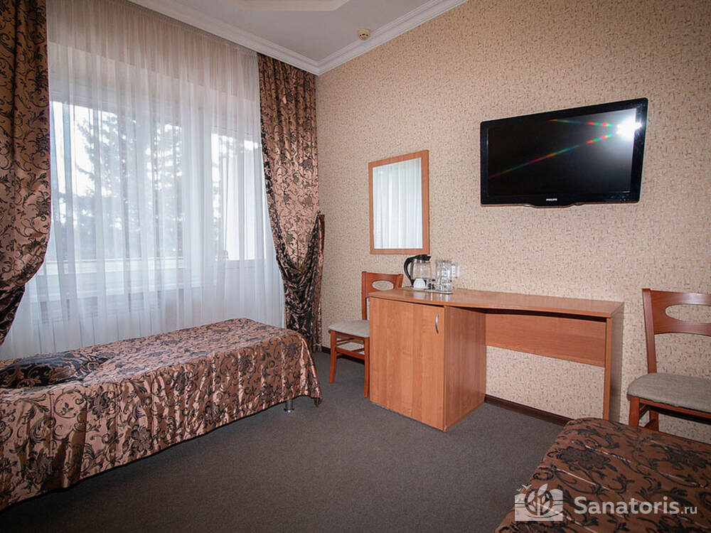 Также в здравнице проводится терапия пиявками и посещением ванн с разными наполнителями и добавками. Помимо лечебного корпуса санаторий состоит из вместительного обеденного зала и пяти жилых зданий. Причем два из них представляют собой вместительные и комфортабельные коттеджи для семейного размещения, имеющие класс люкс.