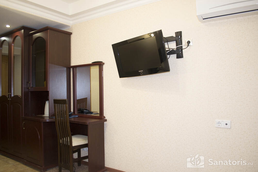 Основные корпуса оснащены переходом, позволяющим в любой момент пройти в столовый зал. Все номера оснащены как мебелью, так и необходимой техникой. При этом не важно, речь идет о категории стандарт, люкс или студио. Однако в номерах высшей категории дополнительно установлены электрические чайники, телефонные аппараты и кондиционеры.