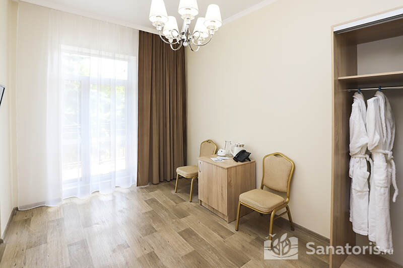 Купить путевку в здравницу могут люди разного уровня достатка, ведь здесь есть апартаменты разных категорий. В номерах класса «эконом» отсутствуют удобства. Есть номера семейного типа и двухместный номер класса «стандарт». Кроме этого на территории туристического комплекса есть отдельно стоящие коттеджи VIP-класса.