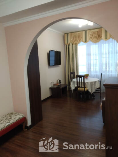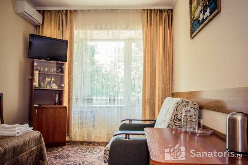 Санаторий Русь находится в центре курортного города, который называется Железноводск. Причем располагается он на горном склоне, вблизи благоухающего парка и уникального места, где бьет сразу два источника с минеральной водой. Благодаря этому вид из балконов номеров завораживает и позволяет полностью перезагрузиться.