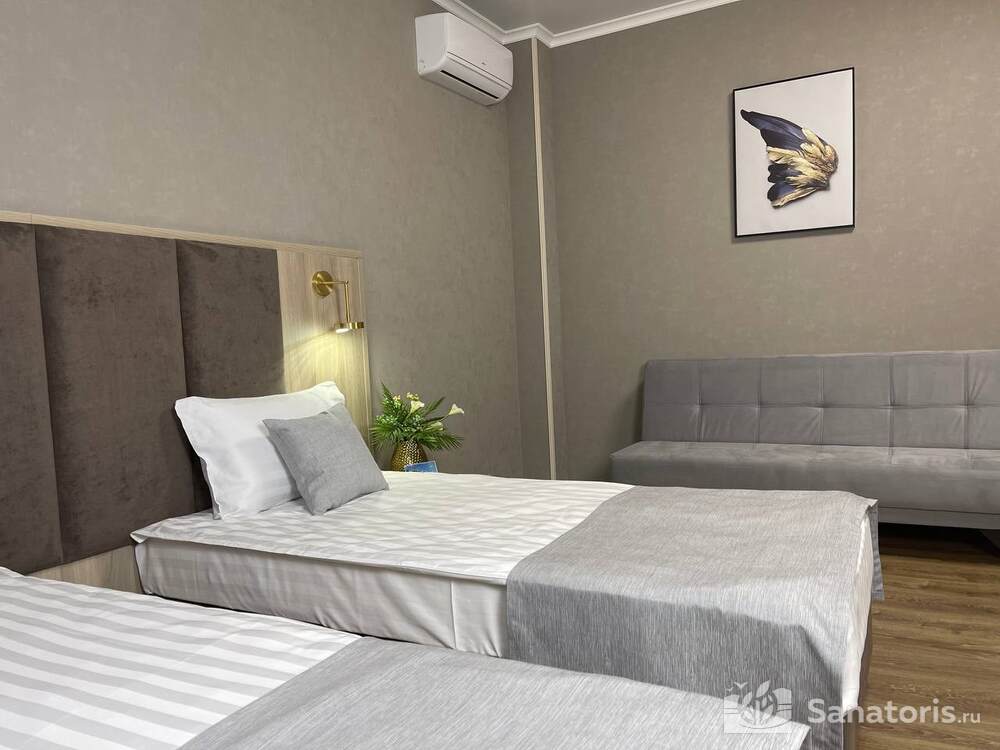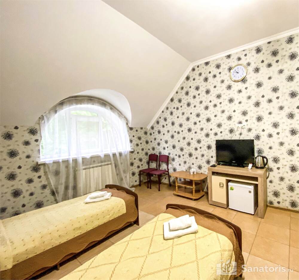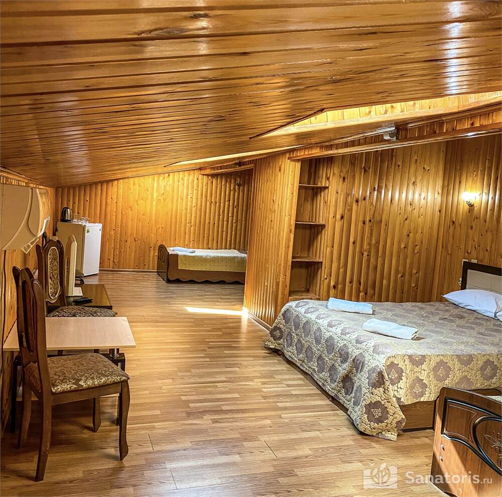 Отель отличается хорошим месторасположением. Спальный корпус состоит из трех этажей. Одновременно здесь может проживать 40 гостей. Есть номера разной вместительности и ценовой категории. Однако в каждом из них присутствует туалет, ванная комната, современная мебель, бытовая техника.