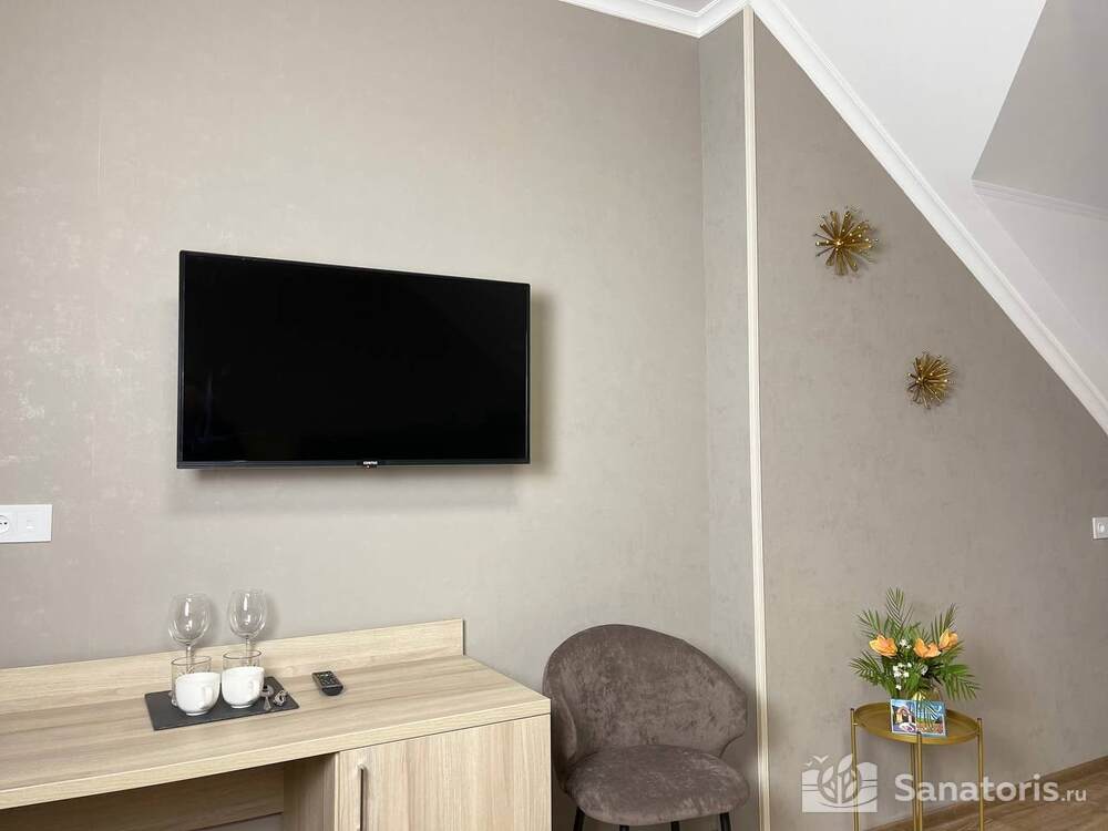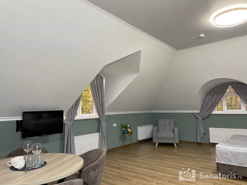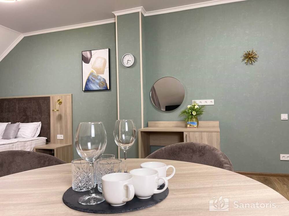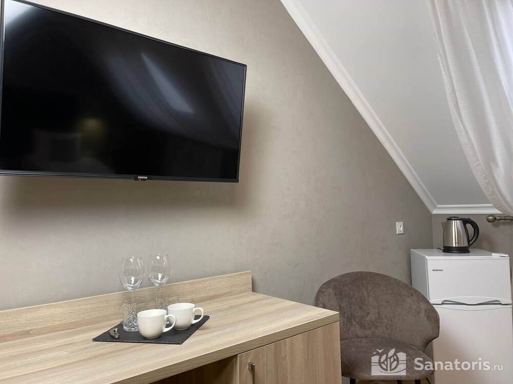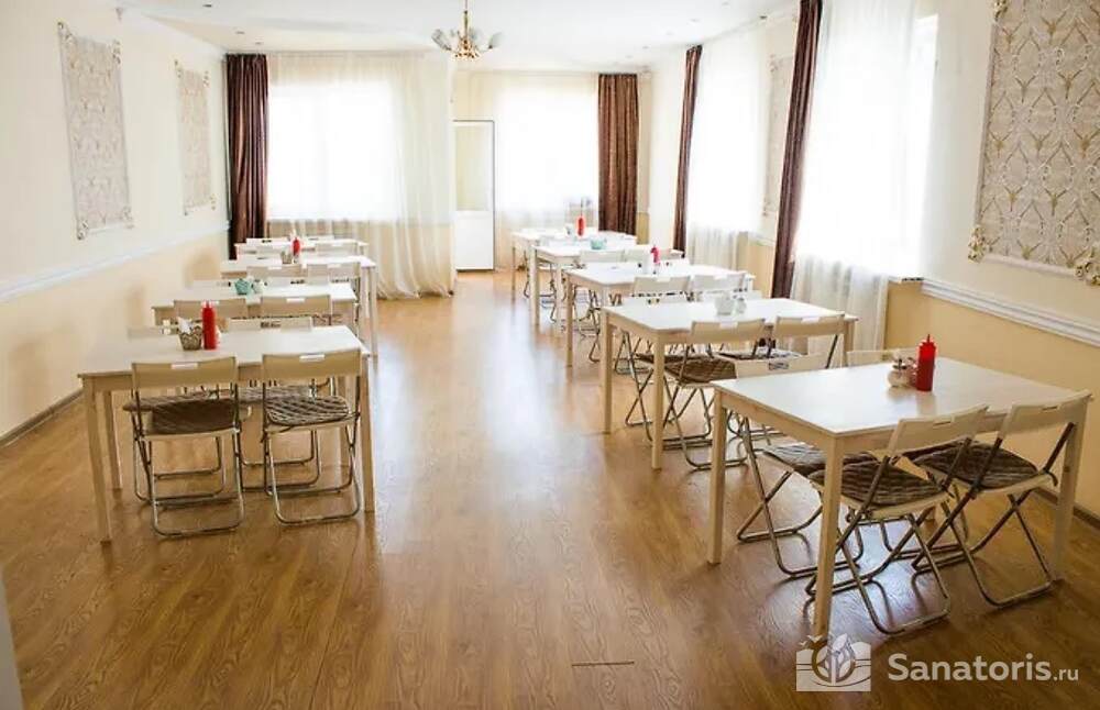 Питание осуществляется в просторной столовой. Постояльцы могут заказывать блюда из меню. Дополнительно предоставляется диетическое меню. На территории санатория есть бесплатный доступ к Интернету.