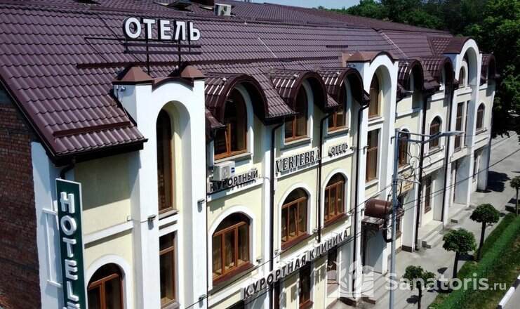 Оздоровительный комплекс «Вертебра» расположен в самом центре курорта Кисловодск. В шаговой доступности находится популярная во всем мире Нарзанная галерея. Всего за 10 минут можно добраться до городского парка и Каскадной лестницы. Туристы могут посетить уютные рестораны и небольшие кафе.