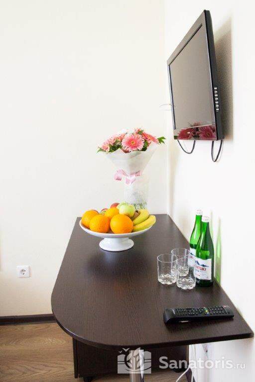 Удобства на территории санатория в номерах включают собственный санузел, холодильник, кондиционер, электрочайник, телевизор с плоским экраном, бесплатный Wi-Fi и мини-бар. Ванная комната комплектуется туалетными принадлежностями и феном бесплатно. В фитобаре и столовой можно заказать себе питание.