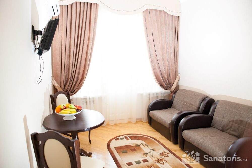 Жилой фонд санатория, рассчитанный на размещение 200 гостей, состоит из 1-комнатных номеров Стандарт и 2-комнатных Улучшенной категории.