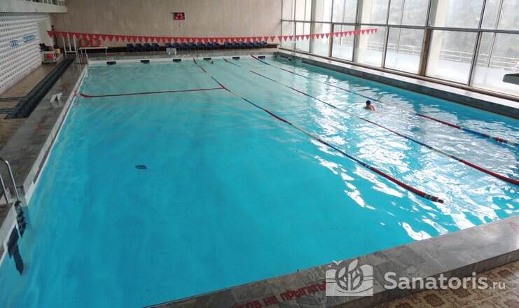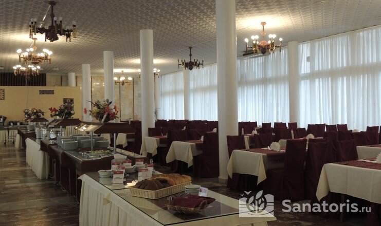 Помимо столового зала на территории санатория открыт ресторан, кафе и лобби-бар. Здесь можно скоротать вечер в приятной компании. Также в здравнице имеется два бассейна с пресноводной водой. Для людей, предпочитающих активно отдыхать, построен теннисный корт и спортивная площадка.