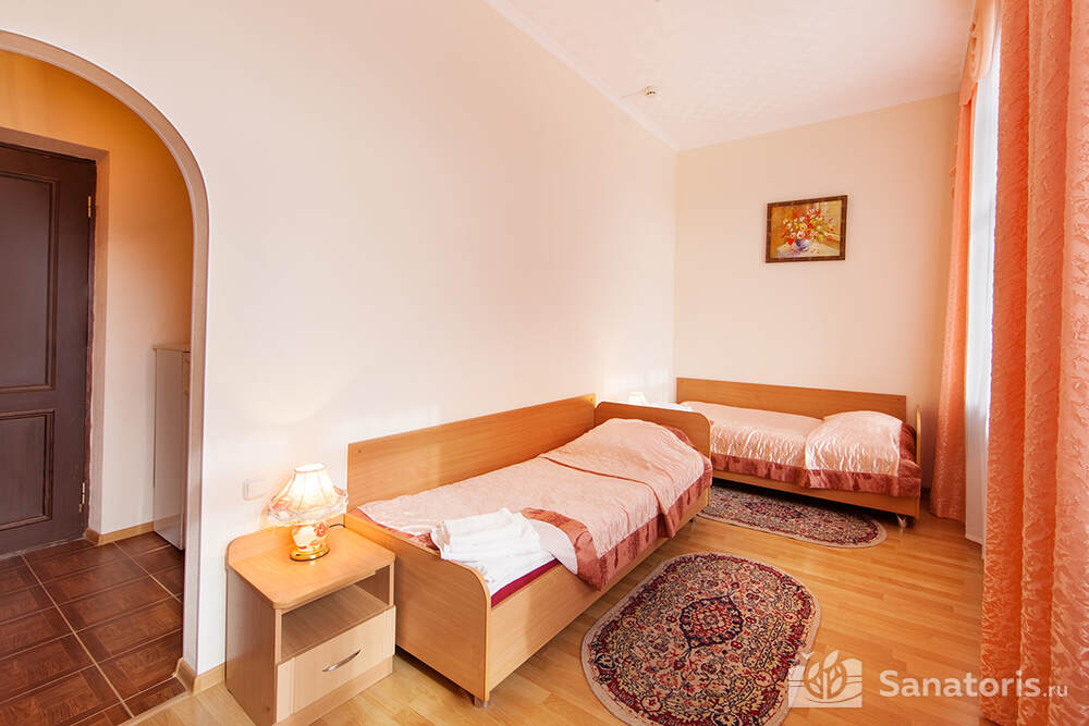 В спальном корпусе имеются номера разной категории. Все они оснащены отдельной ванной комнатой, бытовой техникой и мягкой мебелью. Питание организовано по принципу шведского разнообразного стола. Он организуется три раза в день. Благодаря такому подходу каждый человек найдет блюда, которые он больше всего предпочитает.