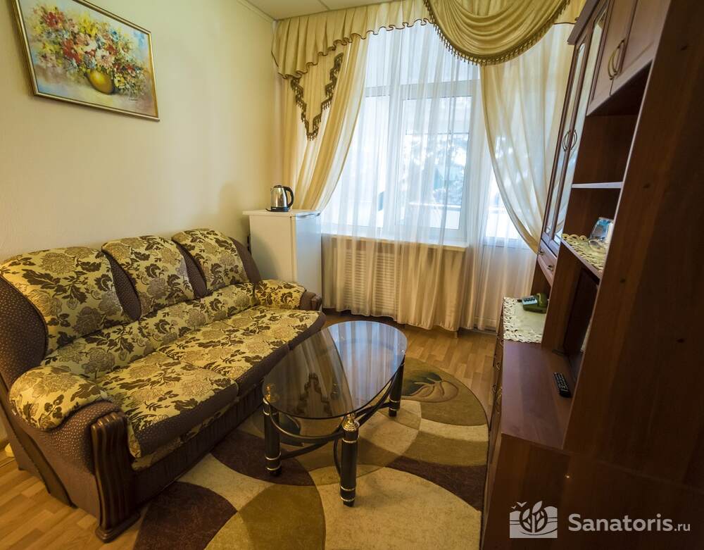 Здравница предлагает гостям максимально комфортные условия проживания и отдыха. Основным сооружением комплекса является двенадцатиэтажное здание, где одновременно могут проживать 400 постояльцев. Жилой корпус выполнен в современном стиле и отвечает всем стандартам европейских отелей.