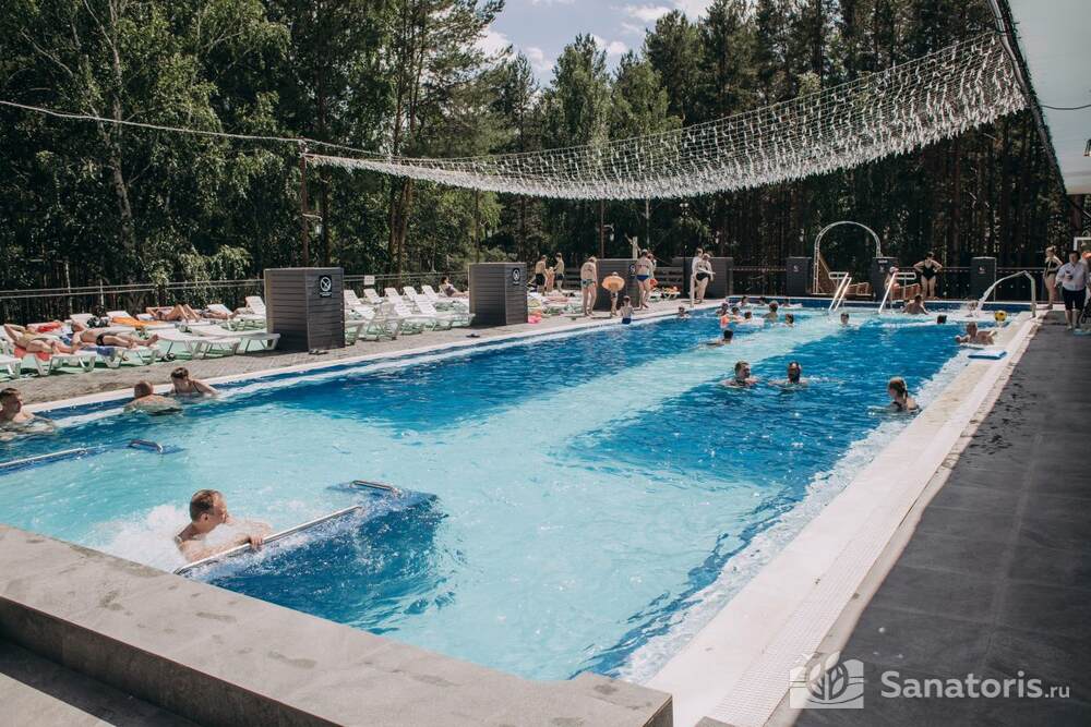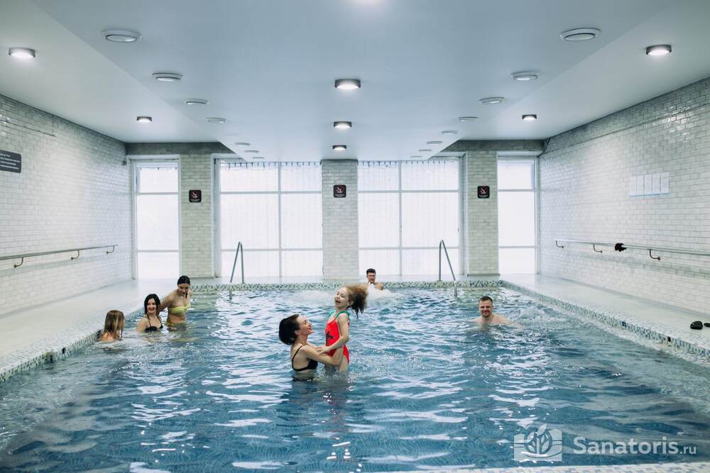В качестве лечения и оздоровления на территории санатория работает термальный бассейн. Вода в него поступает из скважины, которая расположена вблизи здравницы. Бассейн дополнительно оснащен каскадными душами, а также зонтиками и удобными шезлонгами. Он находится под открытым небом.