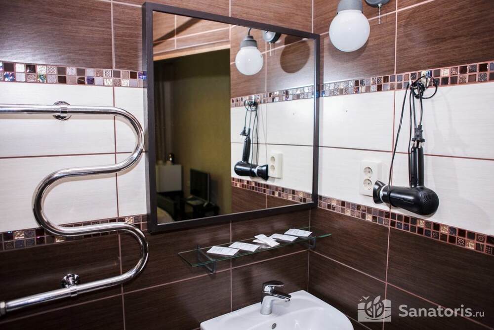 Номера в главном корпусе отличаются повышенным комфортом. В них можно найти бытовую технику, необходимую для проживания. Дополнительно предлагаются туалетные принадлежности, а также чайник с феном. При этом доступен бесплатный интернет, кто не хочет надолго выпадать из происходящего в мире.