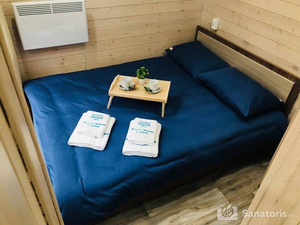 Санаторий “Баден-Баден Термы Реж” представлен двумя корпусами, один из которых двухэтажный, а второй трехэтажный. Первое здание соединено с акватермальным комплексом специальным крытым переходом. Второе здание напоминает размещение в виде хостела. Поэтому здесь минимальный набор услуг, а удобства располагаются на самом этаже.
