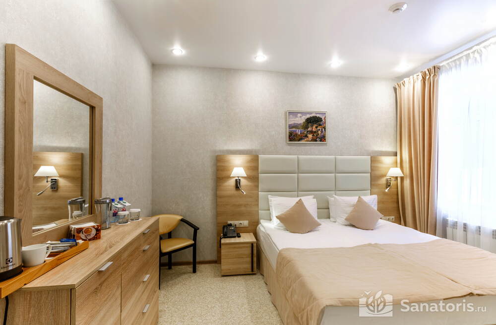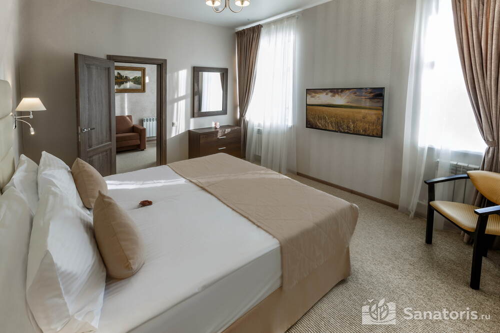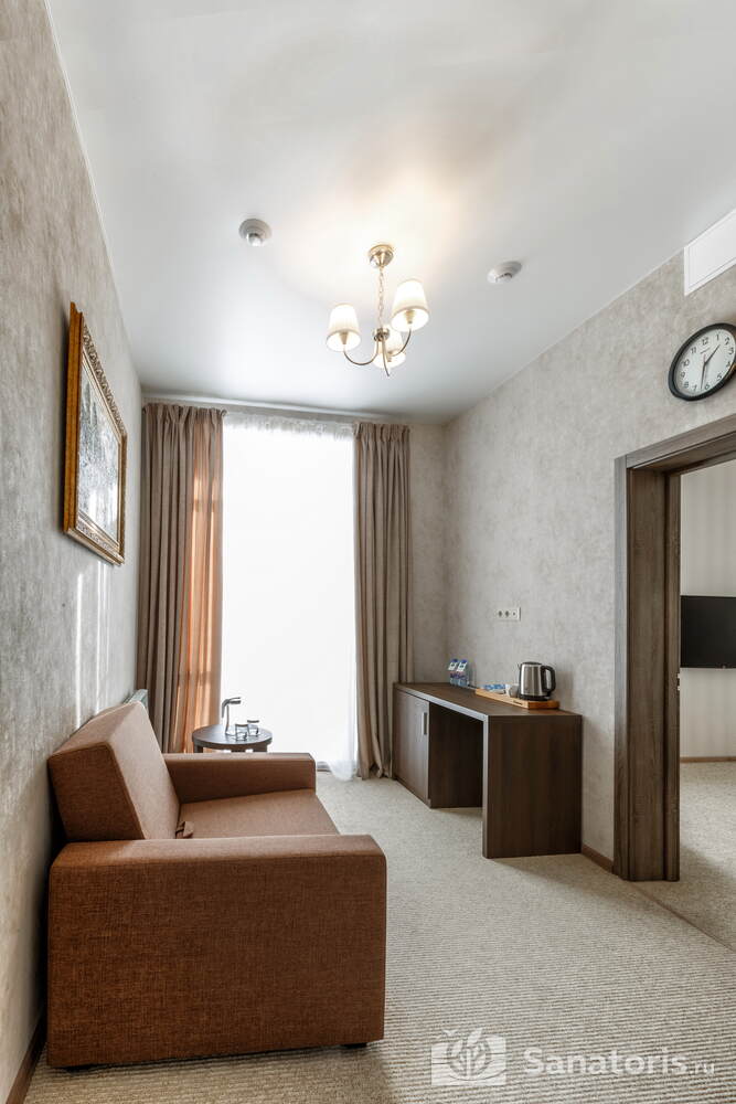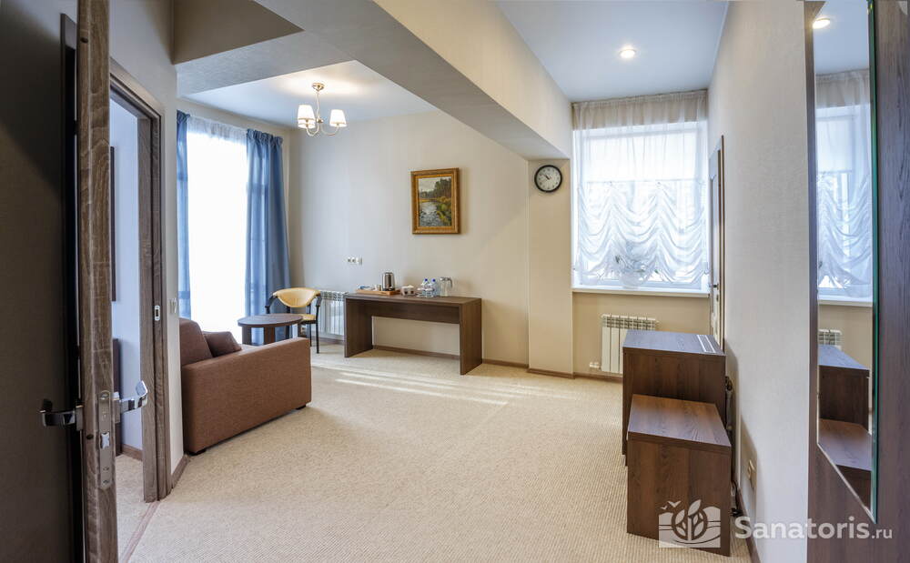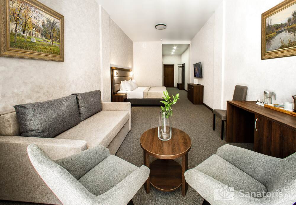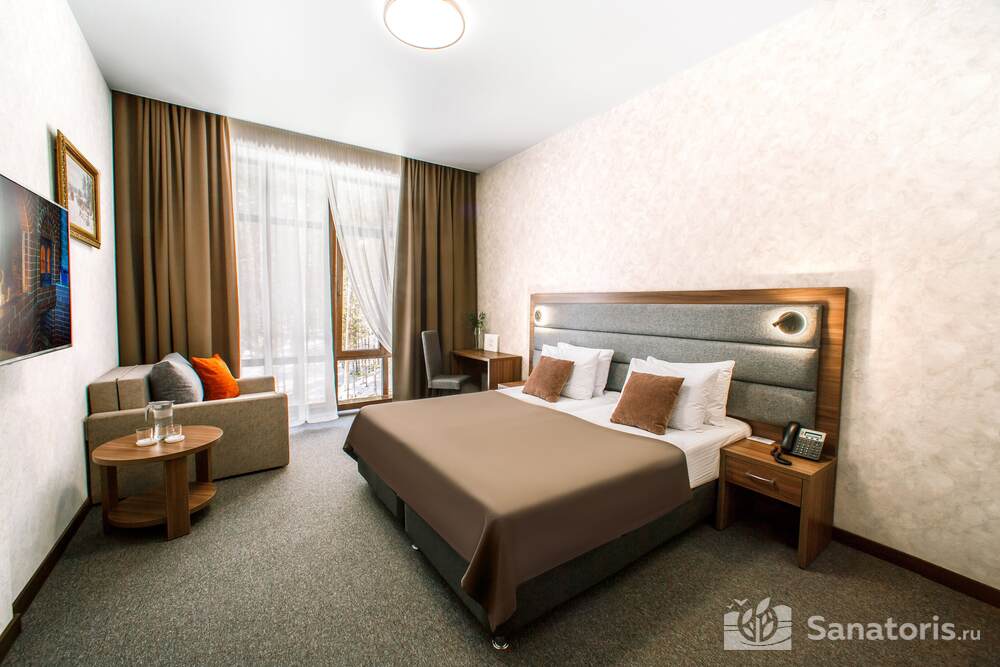 На территории здравницы имеется 4 сооружения. Из них 2 спальных корпуса по два этажа каждый. Так же есть шикарный ресторан и водолечебница. Администрация расположена в главном корпусе на первом этаже. Так же здесь имеется лобби-бар и терапевтический центр. На втором этаже находится зал с тренажерами, комната для детей и библиотека. Гости санатория могут пользоваться бесплатным Интернетом.