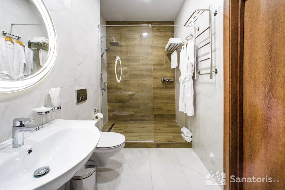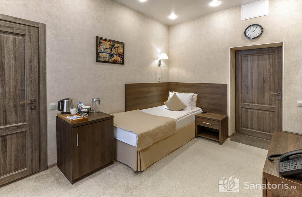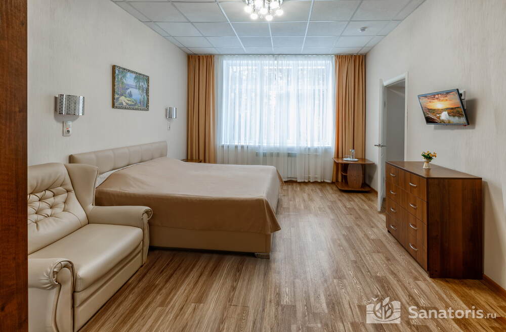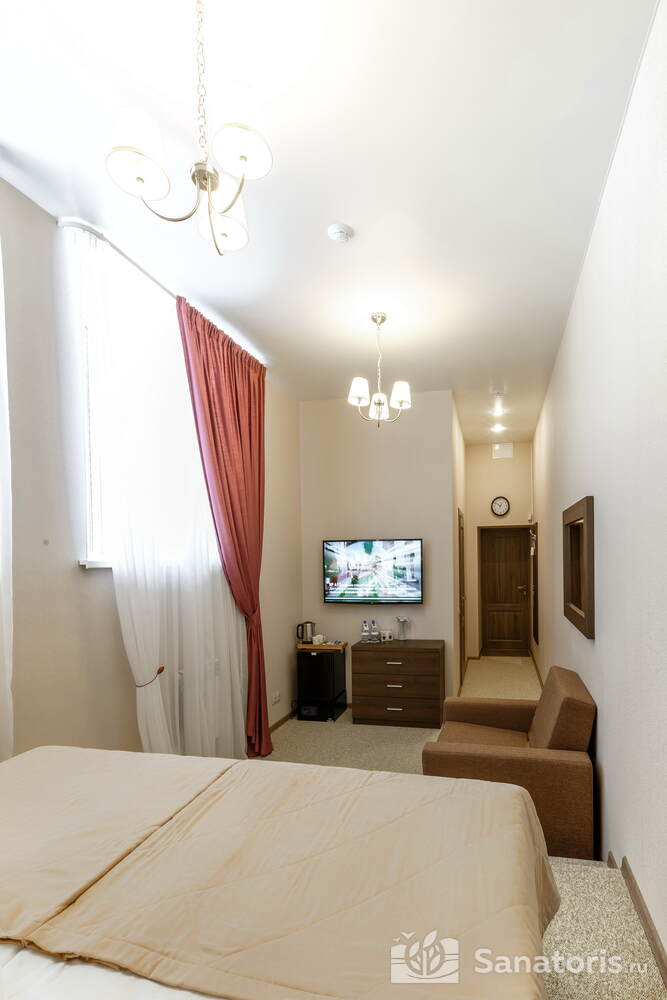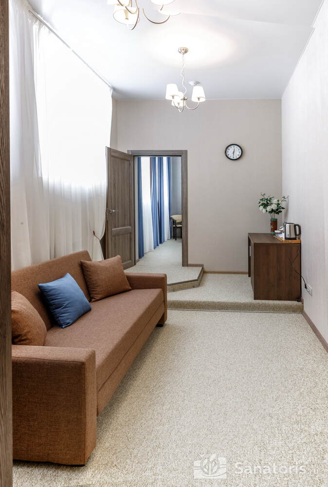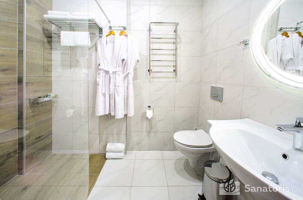 На территории здравницы имеется 4 сооружения. Из них 2 спальных корпуса по два этажа каждый. Так же есть шикарный ресторан и водолечебница. Администрация расположена в главном корпусе на первом этаже. Так же здесь имеется лобби-бар и терапевтический центр. На втором этаже находится зал с тренажерами, комната для детей и библиотека. Гости санатория могут пользоваться бесплатным Интернетом.
