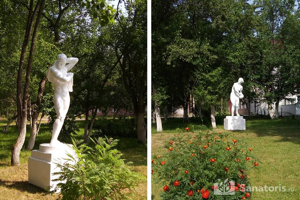 Общая площадь комплекса составляет 11 гектаров. Находится санаторий в живописной лесопарковой зоне. Здесь произрастает много зелени, цветов и деревьев.