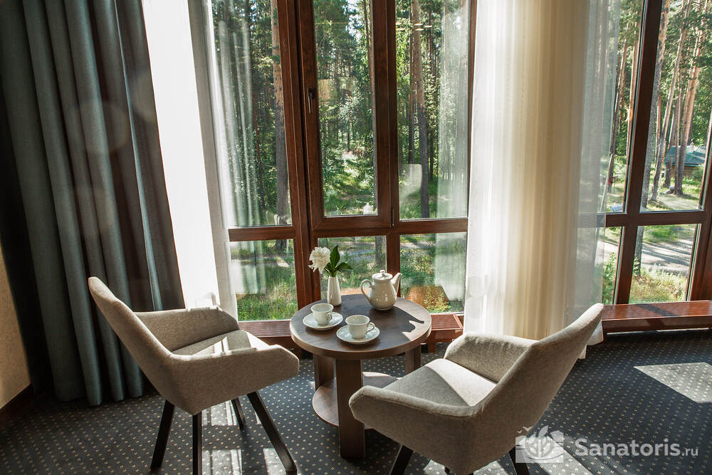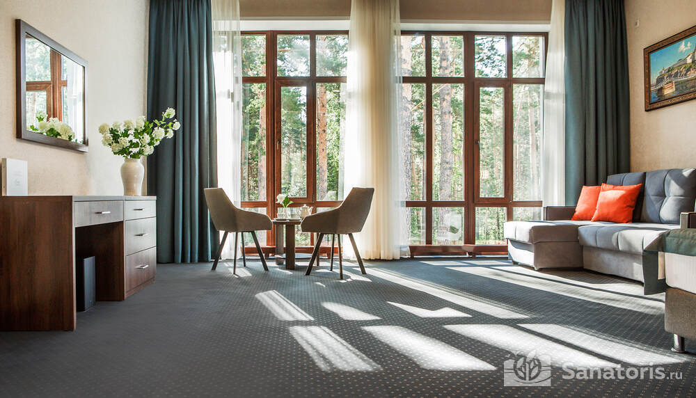 Санаторий со всех сторон окружен хвойным лесом. Кристально чистый воздух наполнен фитонцидами, поэтому дышится здесь максимально легко. Администрация и персонал здравницы делают все возможное для удобства гостей, а так же их эффективного оздоровления.