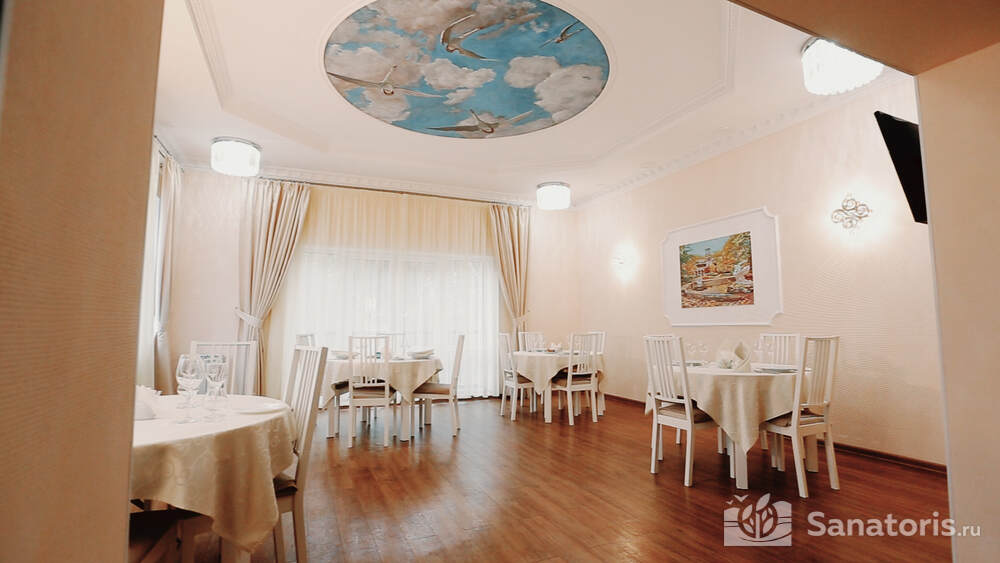 Питание отдыхающих осуществляется в шикарном ресторане. Есть классическое, детское и диетическое меню. Все блюда готовятся исключительно из натуральных продуктов. В ресторане есть отдельная зона повышенного комфорта. Она оборудована исключительно для гостей из гостевого корпуса.