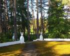 Красные крыши корпусов и лесной пейзаж создают чувство гармонии. На территории комплекса есть ухоженные цветочные клумбы, зоны для прогулок и отдыха, лавочки. В центре парка обустроен уникальный фонтан с белоснежными скульптурами.