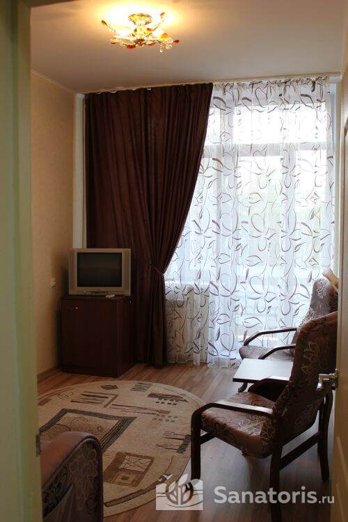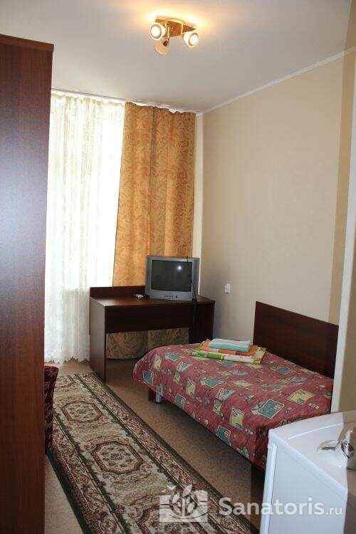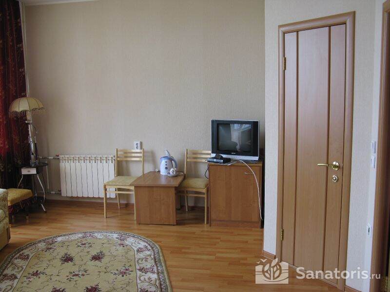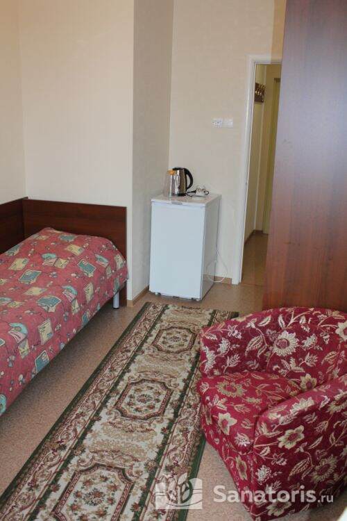 Благодаря тому, что санаторий рассчитан на одновременный приём всего лишь 150 отдыхающих, здесь уютно, нет сутолоки, шума. В номерах есть всё необходимое для жизни: санузел, телевизор, холодильник. При желании можно выйти на балкон и полюбоваться прекрасными видами на лес, реку. После принятия водных процедур не нужно выходить на улицу, в другой корпус санатория можно пройти по тёплому переходу. В холодное время года — это удобно, помогает избежать простуды.