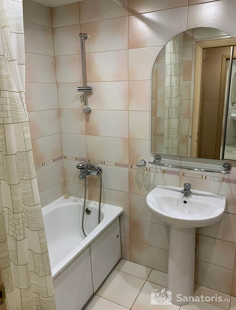 Санаторий обладает собственным пляжем. Сотрудники пансионата регулярно следят за его чистотой. На пляже белый песок и галька маленьких размеров. Есть раздевалки и санузел.