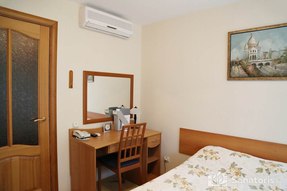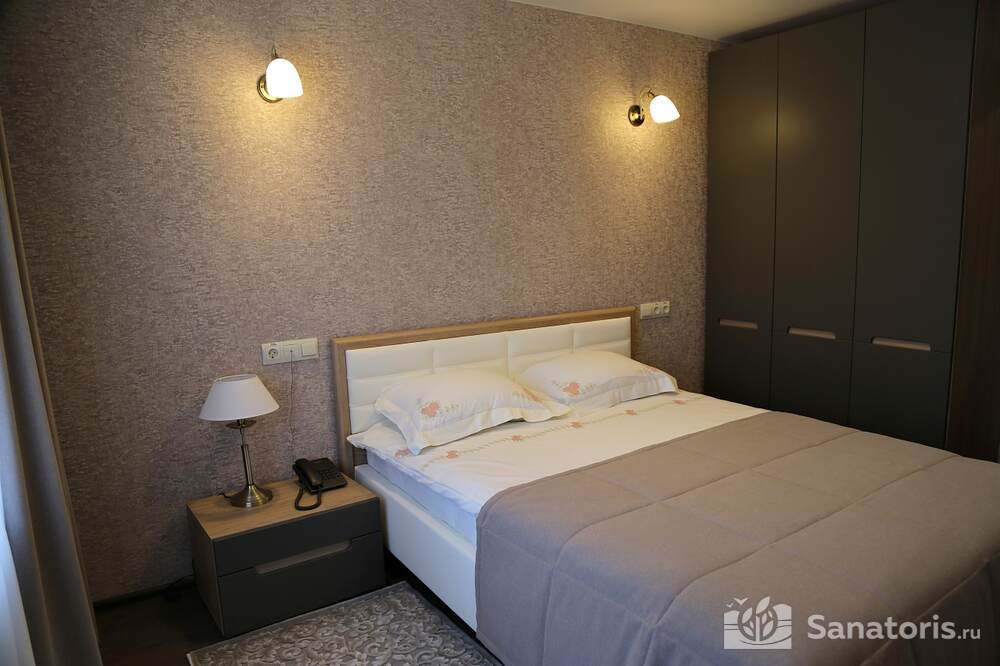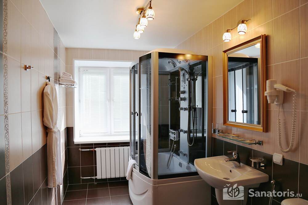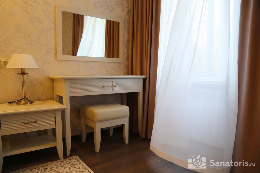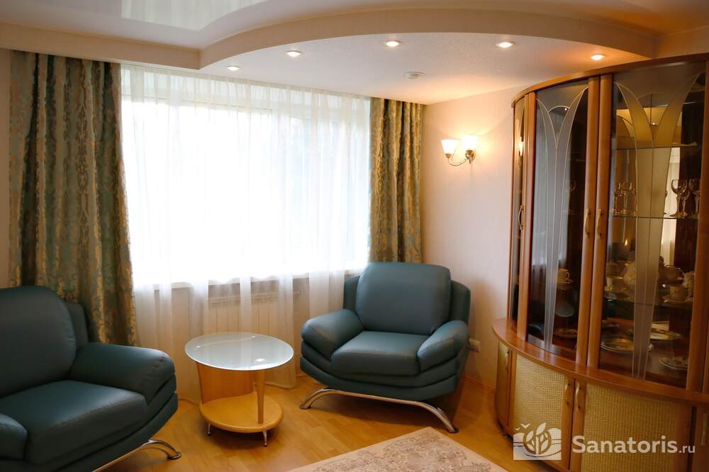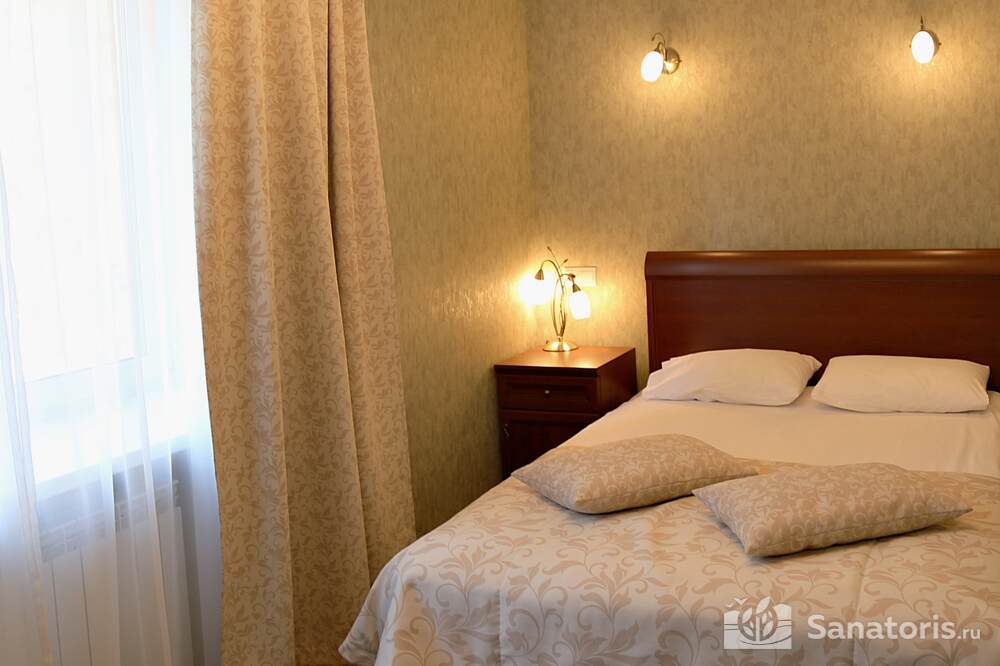 Всего на территории санатория три корпуса. Два из них предназначены для проживания постояльцев. В каждом из них 5 этажей. Так же есть двухэтажный медицинский корпус, который соединяется со спальными корпусами теплым переходом.